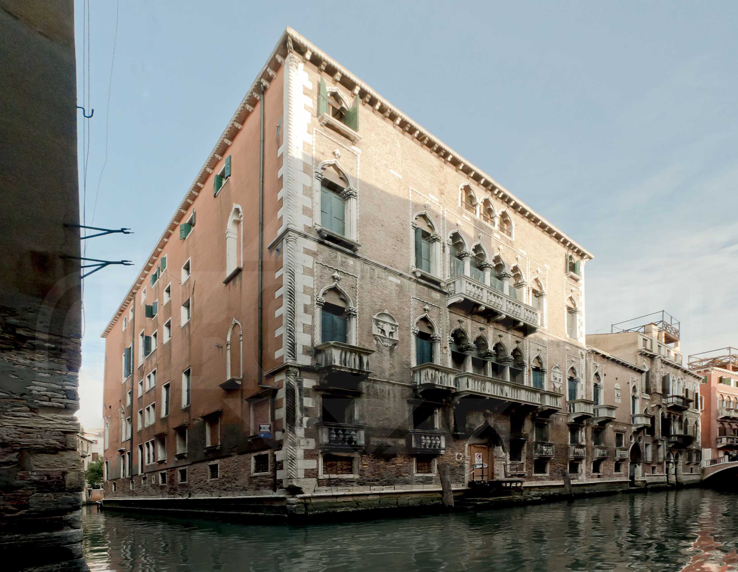 Дворецът е разположен на пресечната точка на каналите Barcaroli и Fuseri. По този начин сградата разполага с директен достъп до водните пътища на града през частен двор и входното антре.