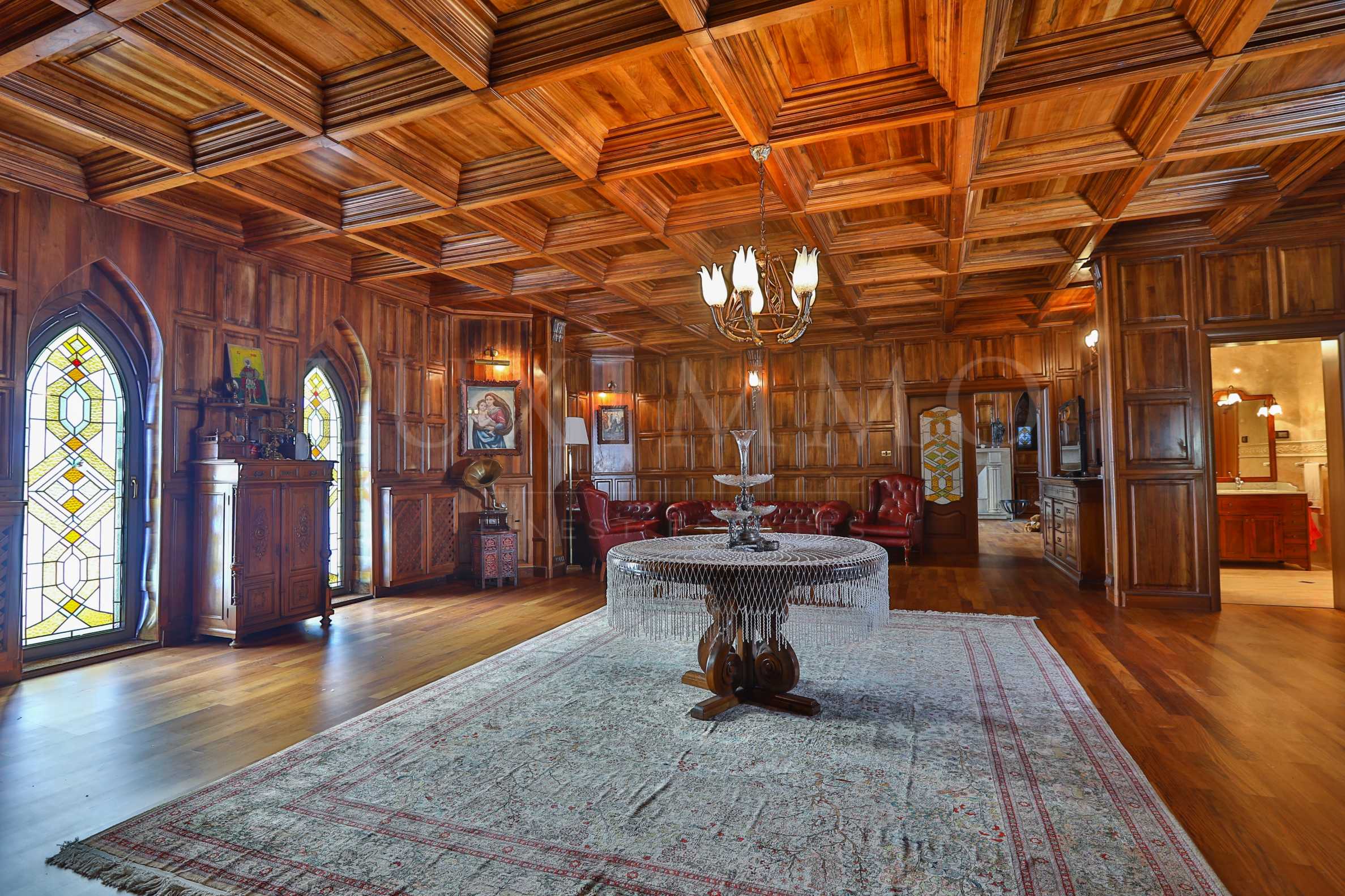 LUXIMMO FINEST ESTATES има удоволствието да представи един истински уникален планински имот, без аналог в България! Приказното имение е сгушено във вековна борова гора, в уединен район с още няколко изключително луксозни вили, в най-аристократичния български планински курорт Боровец. Само на 5 минути с автомобил от центъра на Боровец и кабинковия лифт, това единствено по рода си планинско имение е построено в стила на средновековен дворец, изцяло от естествен камък. Внушителната постройка е с разгъната застроена площ от 780 м², а парцелът, принадлежащ към имота е огромен — цели 4520 м². В двора е разположен голям открит басейн, който е отопляем. Отделна постройка от 130 м2 в двора е предвидена за барбекю със столова, както и апартамент за обслужващия персонал. Играден е и гараж за 4 автомобила, моторни шейни и други. Две паркоместа на открито са на разположение в двора.
