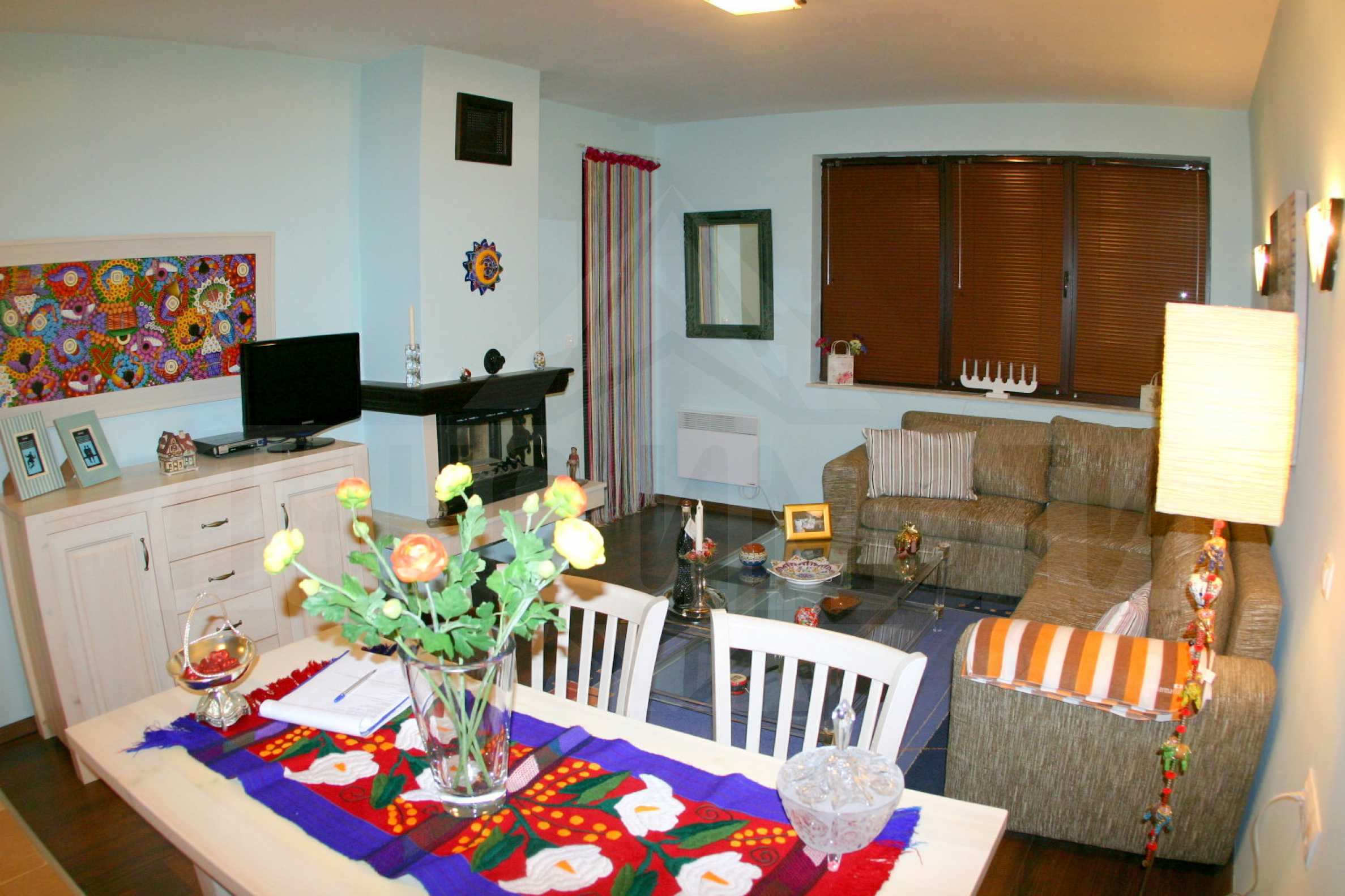 Двустайното жилище се простира върху 61.97 кв.м. и се намира на партерния етаж с прекрасно югоизточно изложение. Стаите са завършени със стени – латекс, подове – ламинат и теракот и ПВЦ дограма. Кухнята е напълно обзаведена и оборудвана със стъкло-керамичен плот с две гнезда, абсорбатор, вградена фурна, хладилник, шкафове за посуда и инвентар, маса за хранене с четири стола; холът - с ъглов диван с шест места, масичка за кафе, телевизор, скрин, шкаф и камина; спалнята - с двойно легло с матрак, гардероб, нощни шкафчета и напълно оборудвана баня с тоалетна и вана плюс мивка с огледало. Източният балкон разкрива приятна гледка към Пирин планина и околните комплекси. Стаите се отопляват чрез електрически конвектори и камина в дневната, а банята – с електрическа лира. Апартаментът разполага с телефон, кабелна телевизия и интернет (цялата сграда има Wi-Fi покритие). Апартаментът има свой собствени уникален дух и атмосфера, различни от болшинството апартаменти в Банско. Такса за поддръжка в комплекса е само 6.50 Евро/кв.м.