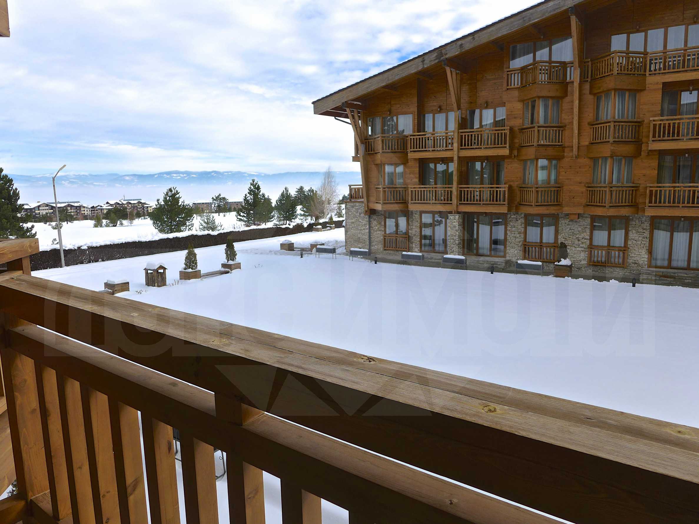 Чудесен апартамент с обща площ 114.08 кв.м., който се състои от две обединени студии, в луксозния 5-звезден затворен комплекс "Пирин Голф & Кънтри Клуб". Комплексът се характеризира с перфектна комбинация между модерни удобства, спиращи дъха планински картини и отлични условия за ски спортове, голф и летен туризъм. Комплексът е сгушен в живописната Разложка долина, разположен в непосредствена близост до голф игрището и само на 6 км от популярния ски курорт Банско.