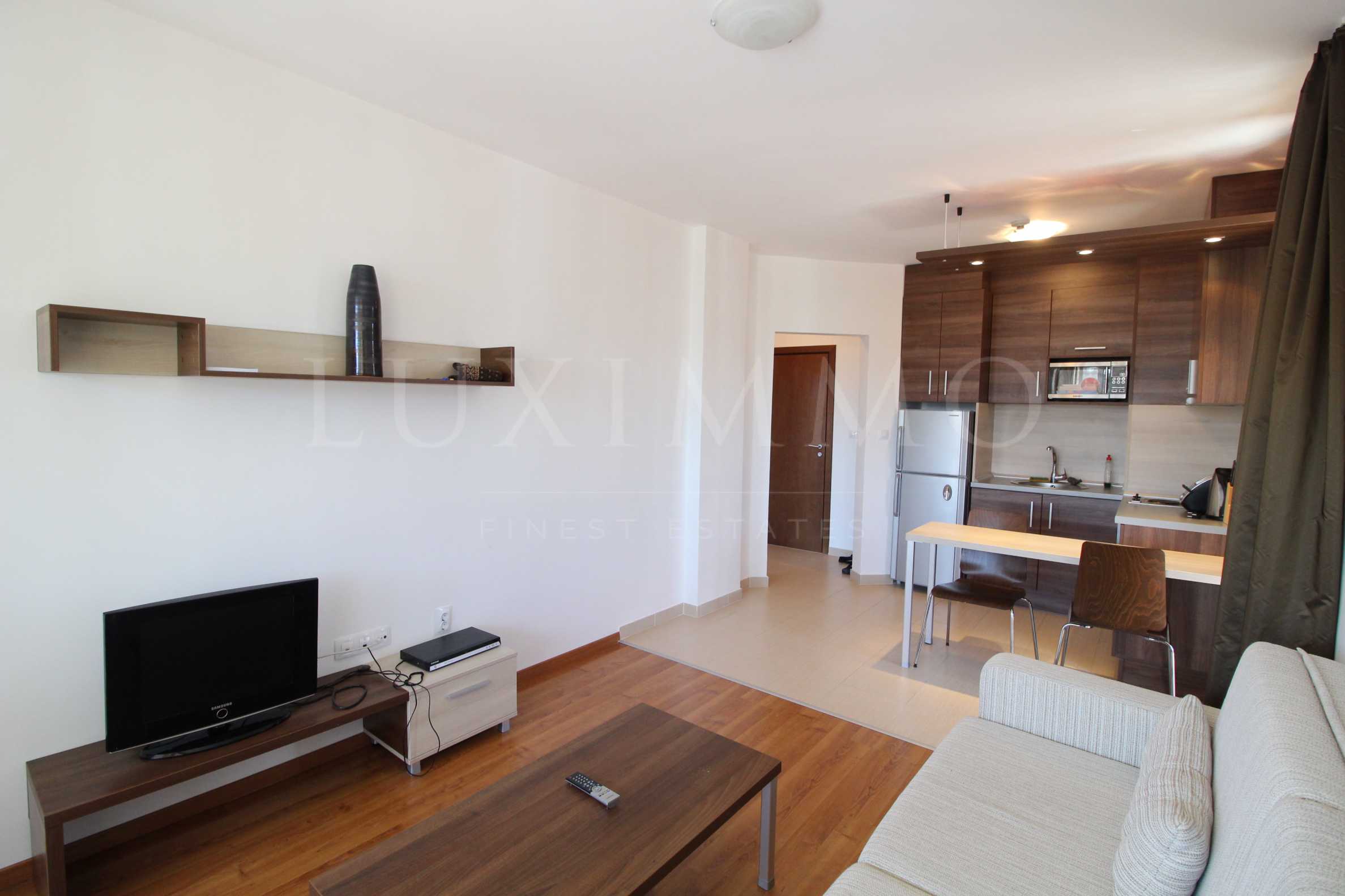 Предлагаме на вашето внимание двустаен апартамент с площ 59 кв.м. в Belvedere Holiday Club. Имотът се състои от обзаведена кухня с хол, спалня, баня с тоалетна и тераса с изглед към басейна. Жилището се предлага напълно обзаведено и оборудвано и се намира на пети етаж, абсолютно готово за нанасяне. Луксозният стил и обзавеждане допринасят за модерна и свежа визия на имота.