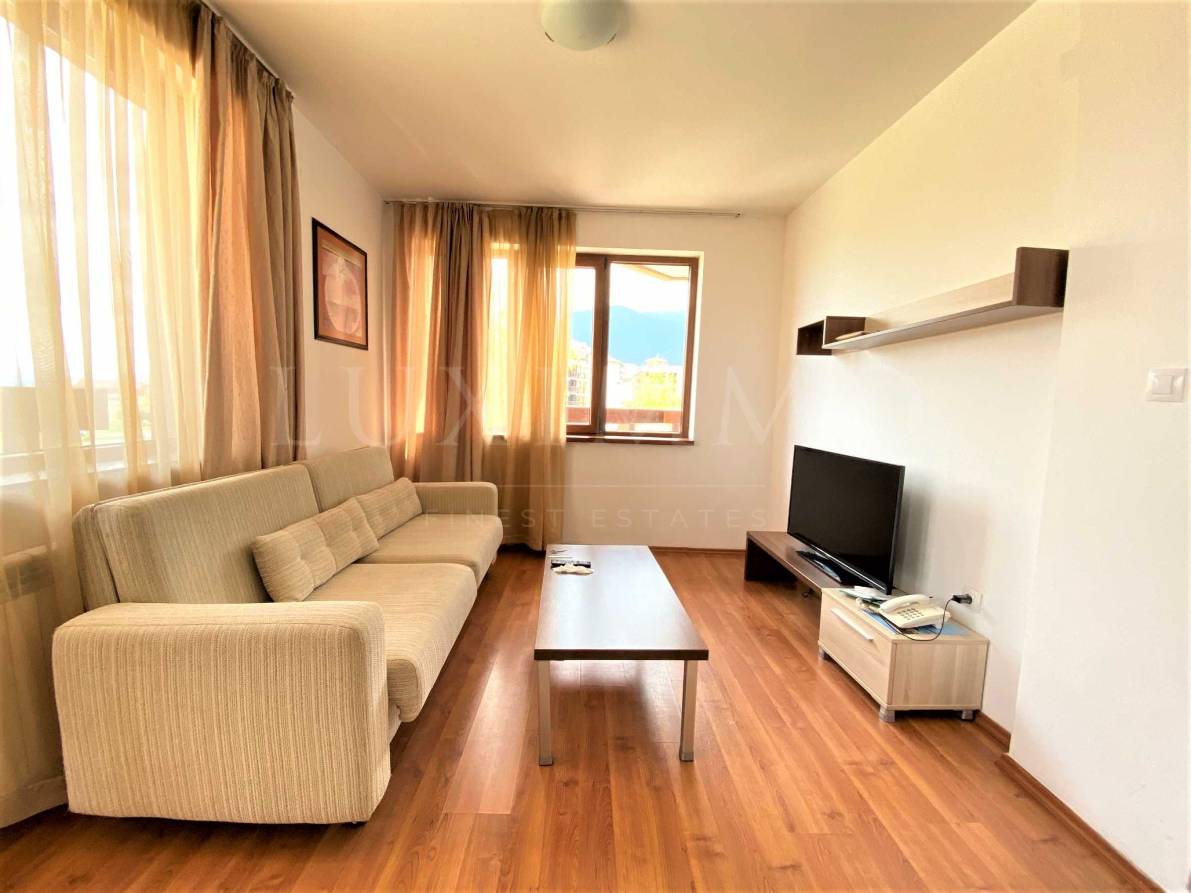 Представяме двустаен апартамент във ваканционен комплекс с всички екстри, разположен до кабинковия лифт на Банско.