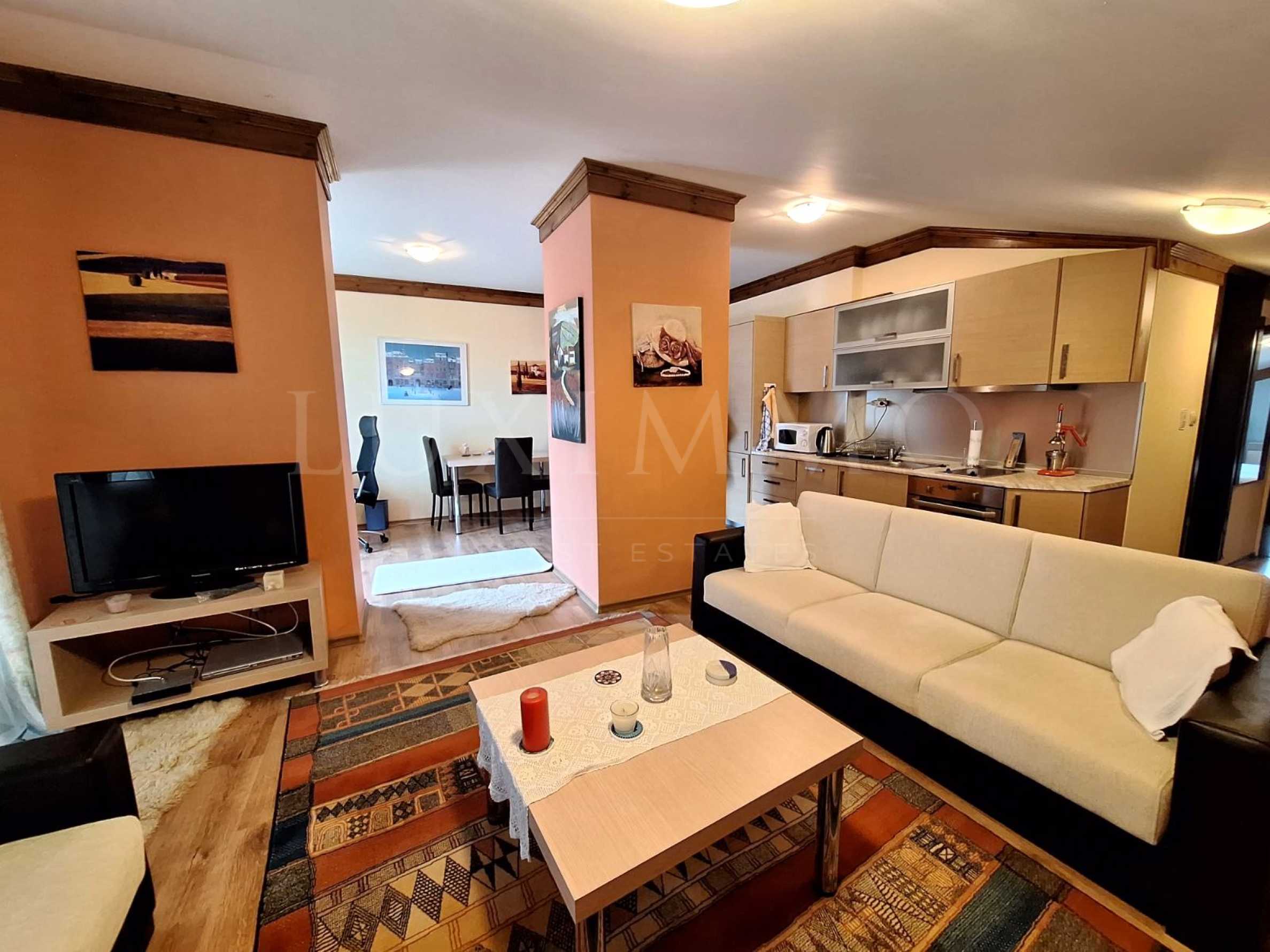 Напълно обзаведен и оборудван двустаен апартамент с гараж на 600 м от ски лифта в Банско.