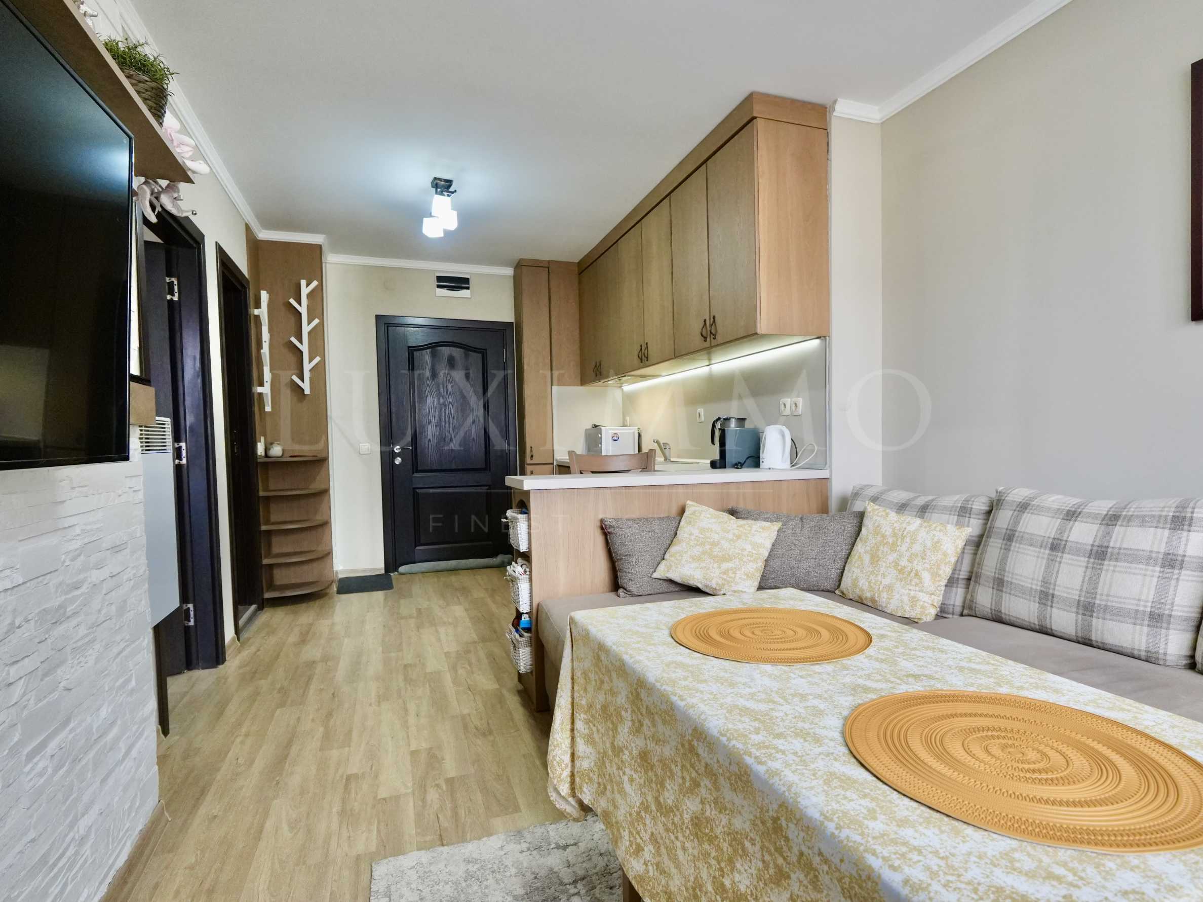 Представяме реновиран двустаен апартамент, разположен в един от най-предпочитаните комплекси в Банско – „Мария-Антонета“, само на няколко минути пеша от кабинковия лифт.