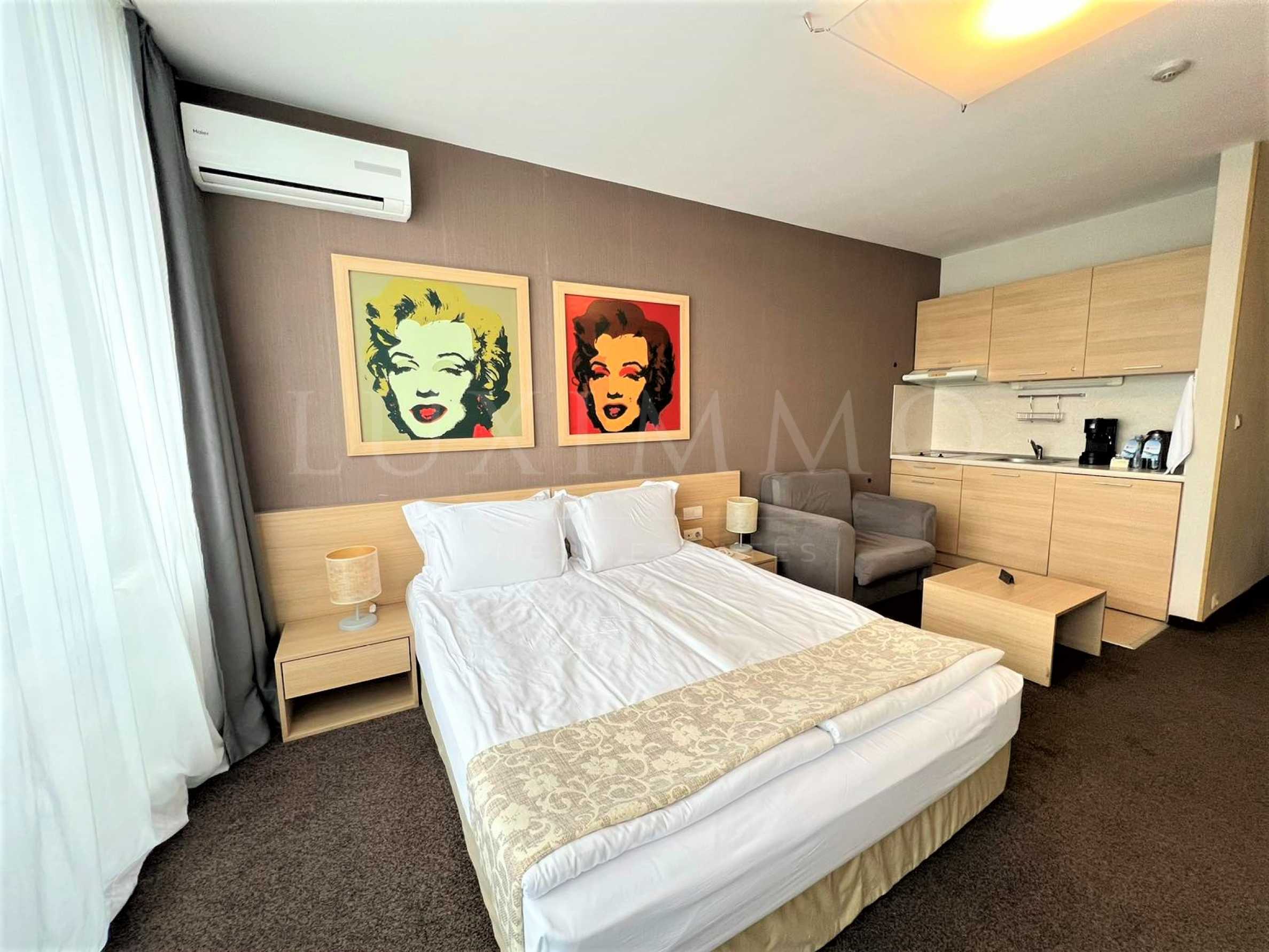Обзавеждането и оборудванeто е включено в крайната цена и се състои от: модерна кухня с двоен котлон, аспиратор, мивка, хладилник, електрическа кана, тостер, спалня, масичка за кафе, телевизор. Банята е обзаведена с тоалетна, вана с душ, мивка и огледало.