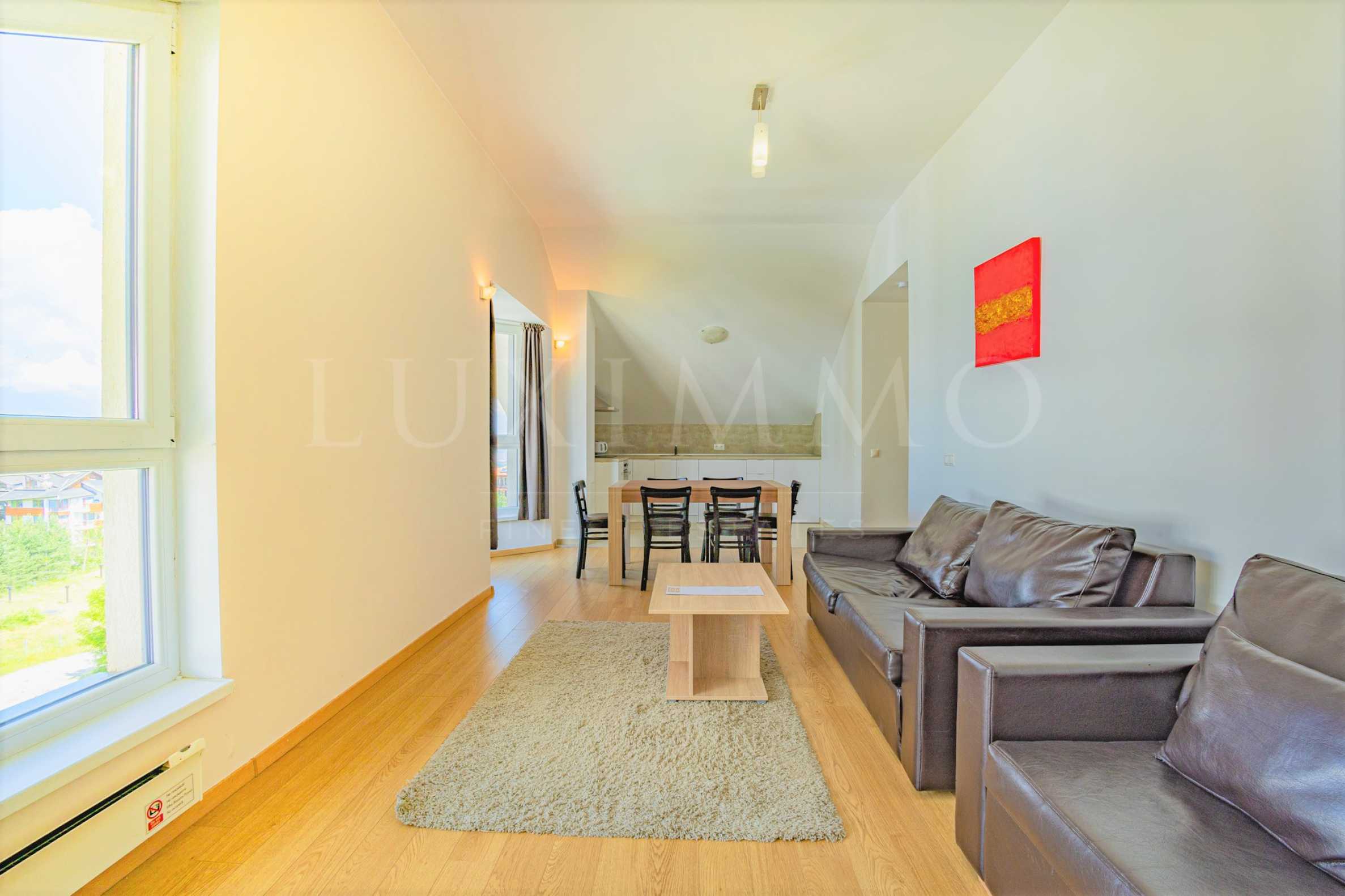 Жилището е с индивидуален дизайн, с голямо внимание към детайлите. В декорацията са използвани само най-висококачествените и естествени материали. Просторната всекидневна разполага с мека мебел и бяла кухня, която е напълно оборудвана с висок клас техника: фурна, котлони и хладилник.