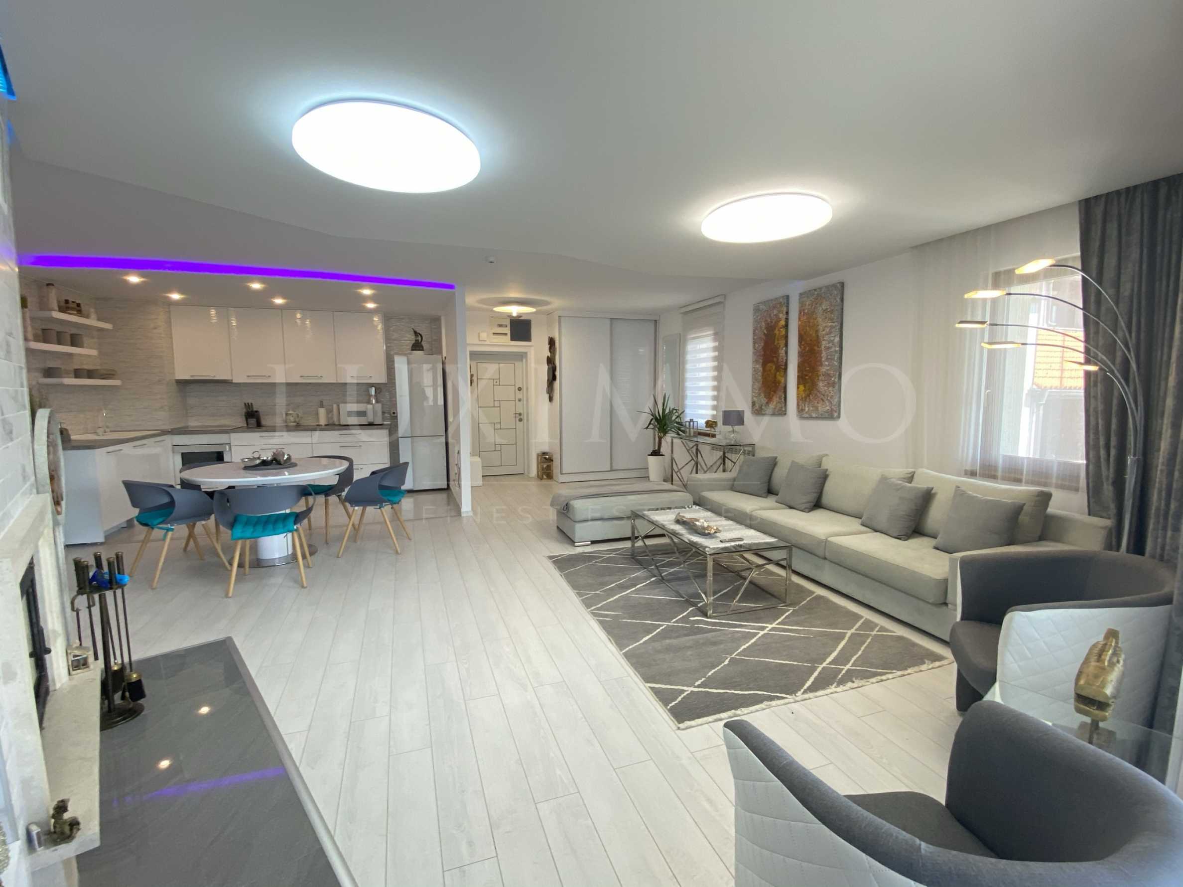 Голям и просторен апартамент с уникална планинска панорама. Намира се на 400 м от лифта и на 1 км до центъра. Апартаментът се намира на 4-ти етаж и е с югоизточно изложение. Районът се отличава с чист въздух и спокойна атмосфера. Сградата е с отлично ниво на поддръжка, красива озеленена територия, спа център, който може да се ползва от собсвениците, рецепция и обособени паркови места в двора на сградата. Апартаментът е обзаведен по дизайнерски проект и се състои от просторен хол с обособен кухненски бокс и балкон, две спални, баня с тоалетна и отделно тоалетна. Апартаментът се продава с мазе от 2,18 кв.м.,включена в общата площ на апартамента. Отоплението е с локално парно на ток. Благодарение на уникалната си локация, жилището е подходящо не само за зимна почивка, а и за целегодишно живеене. Има такса поддръжка.