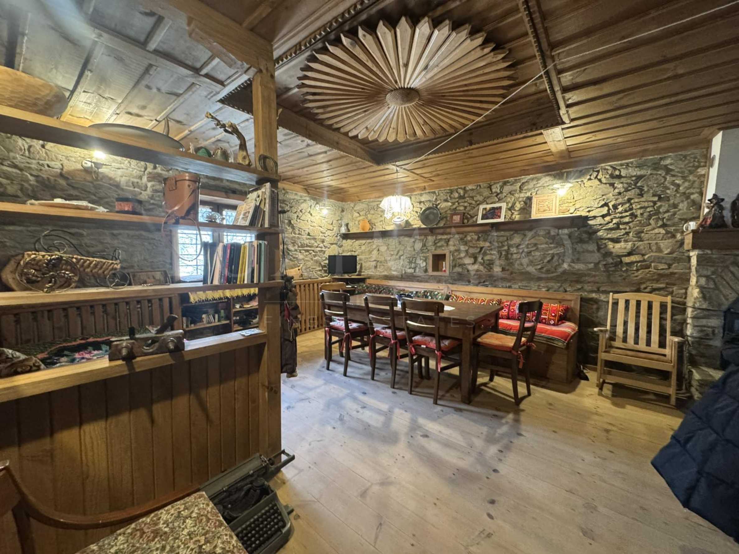 Подът е с дюшеме, стени, облицовани с камък и таван от дърво.