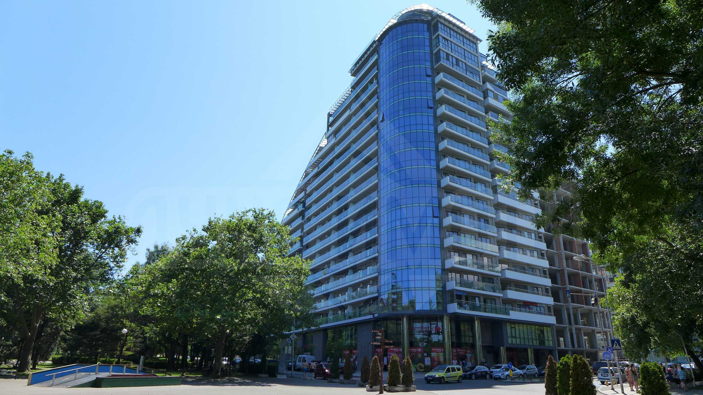 Напълно обзаведен луксозен двустаен апартамент, находящ се в престижна сграда с модерна визия и атрактивно местоположение в най-предпочитания район на град Бургас – до входа на Морската градина срещу Пантеона.