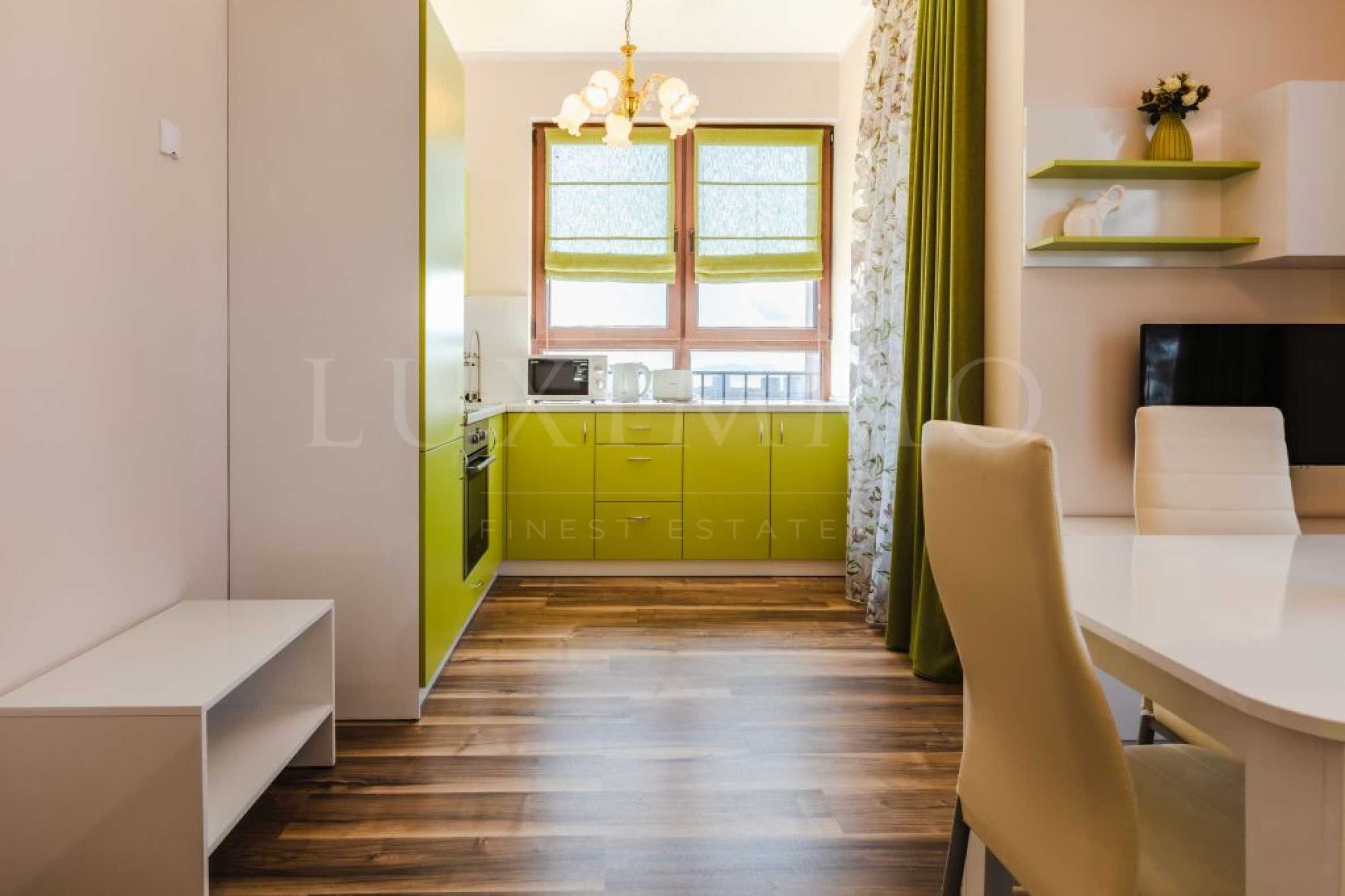 Обзаведен с отлични мебели и техника, имотът е готов за нанасяне, съчетавайки в себе си всичко необходимо за най-комфортното обитаване.