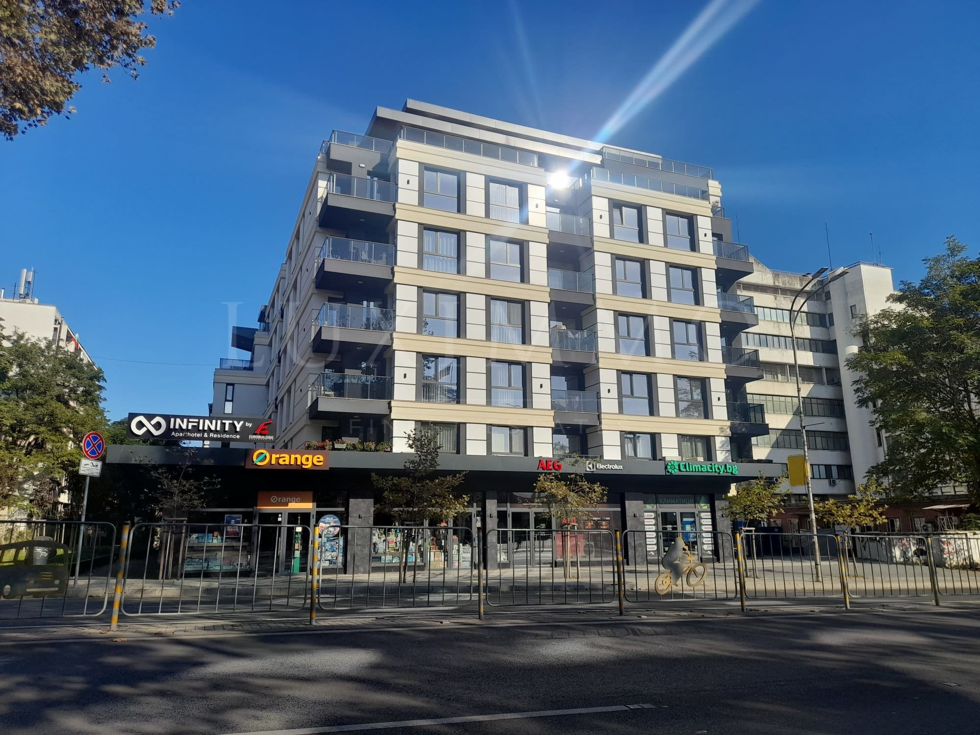 На изключително комуникативно място, до два главни булеварда с бърз достъп до всяка точка на града. На 5 минути пеша от центъра, на метри от централната спирка на градския транспорт, супермаркети, аптеки, магазини, книжарница, детска площадка, училища и др. Морската градина и плажа са на 15 минути пеша.