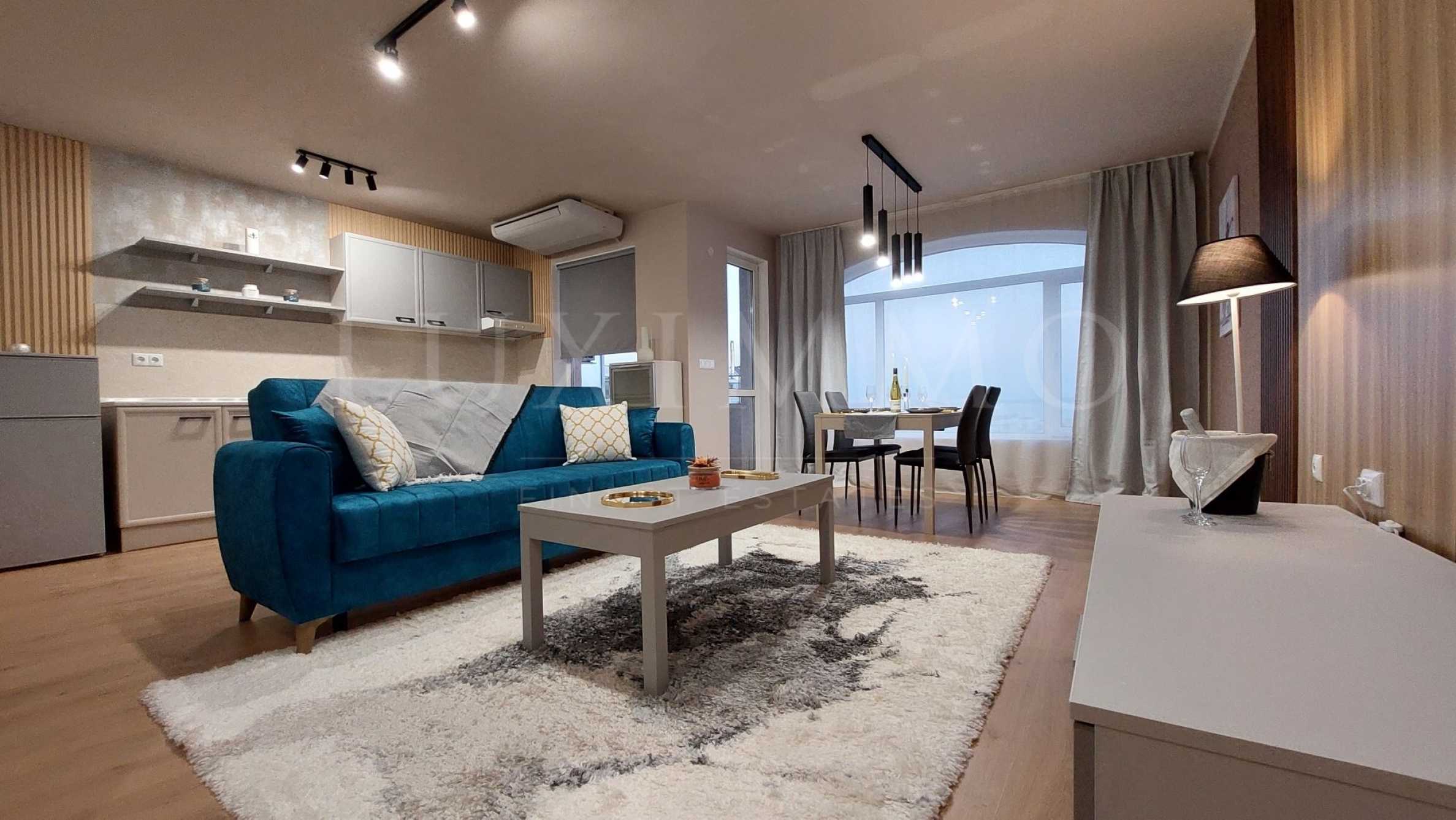 Жилището е напълно обзаведено и оборудвано с комфорни мебели и качествена техника. За отопление и охлаждане има монтирани два климатика.