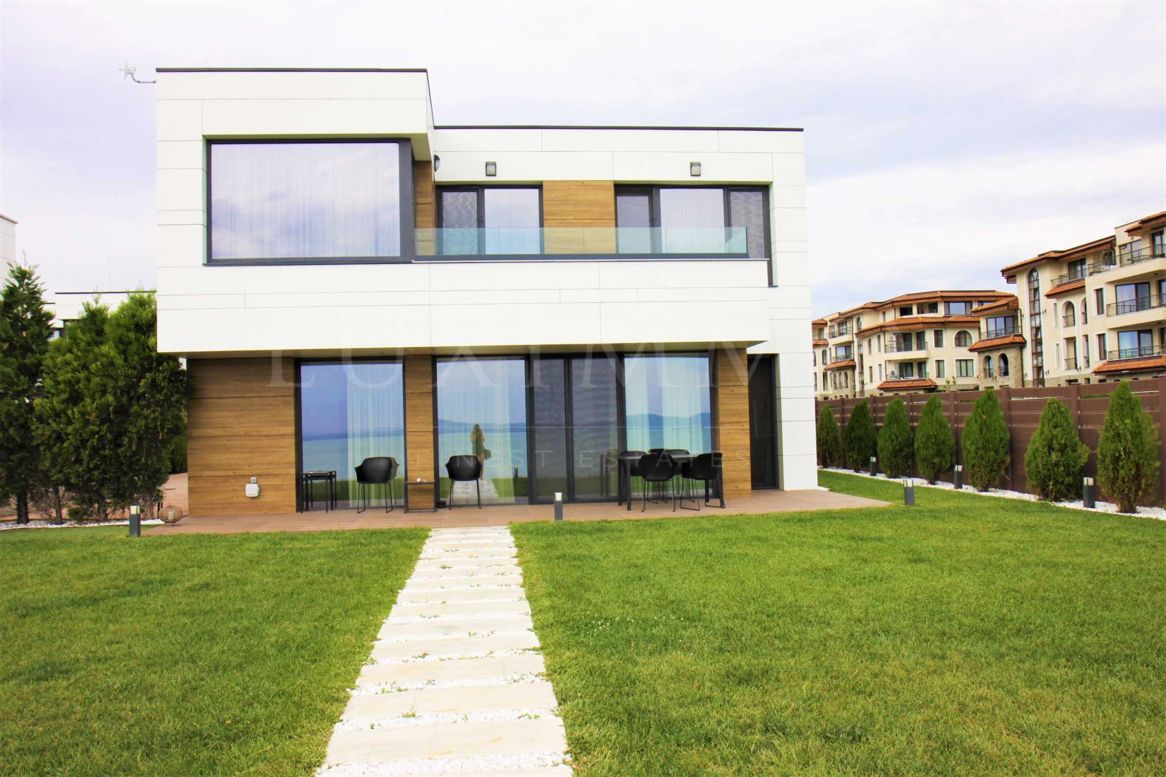 Имотът е разположен на първа линия море, до плаж Атлантис, в елитния район на квартал Сарафово и предлага приятна гледка към Бургаския залив. Състои се от 257 кв.м застроена площ: подземен, 1-ви и втори етаж.