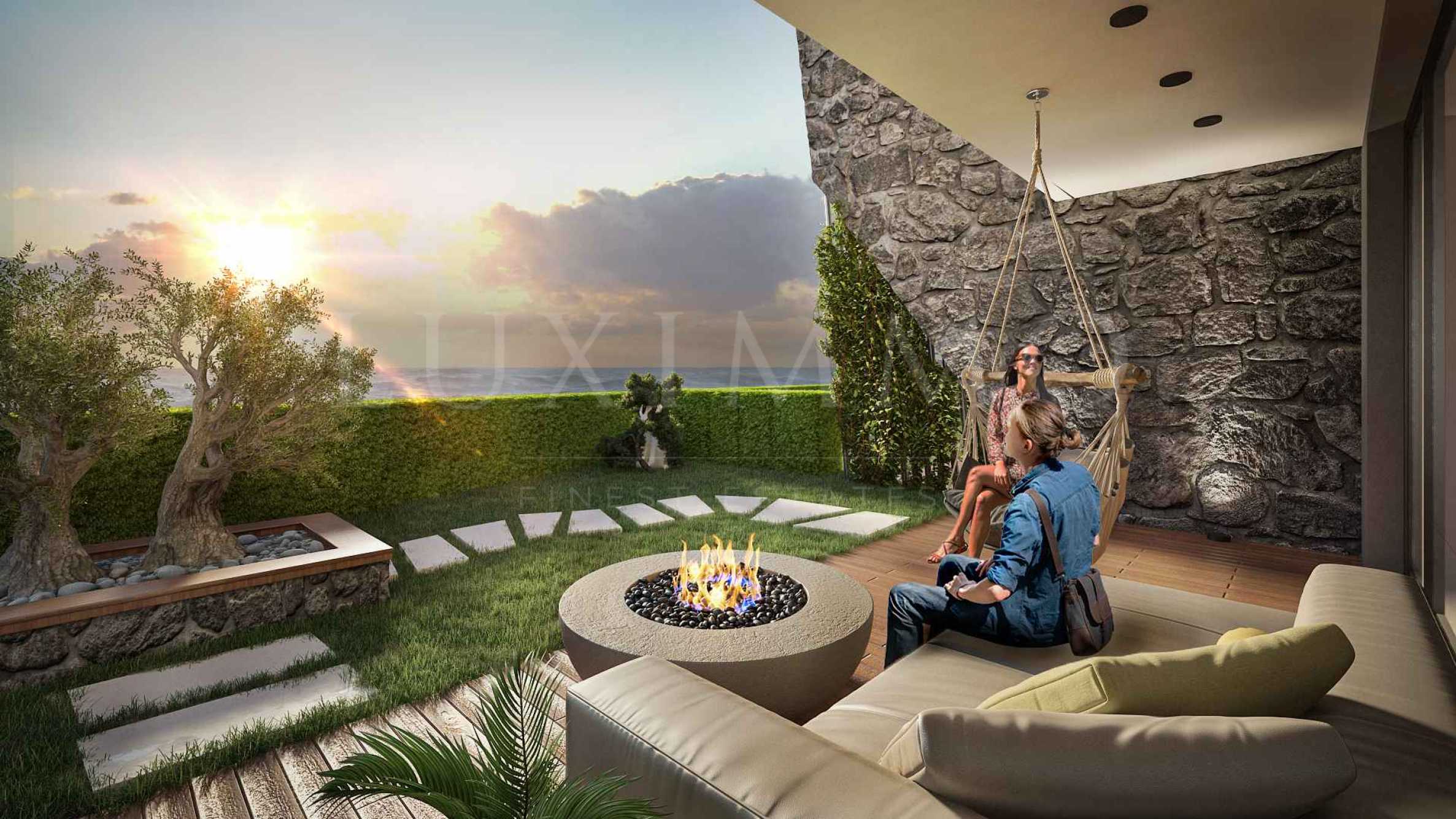 Парцелът е с голяма денивелация, което позволява гледка към морето от всеки един имот или къщата. Апартаментите и къщите са ориентирани към морето, с прекрасни морски гледки, архитектурата е съчетание на стъкло, камък и дърво, а основният акцент е върху зеленината. Големите стъклени прозорци и стъклени парапети допринасят за още по-добра видимост към морето. Планирано е стъпаловидно озеленяване на целия незастроен имот.