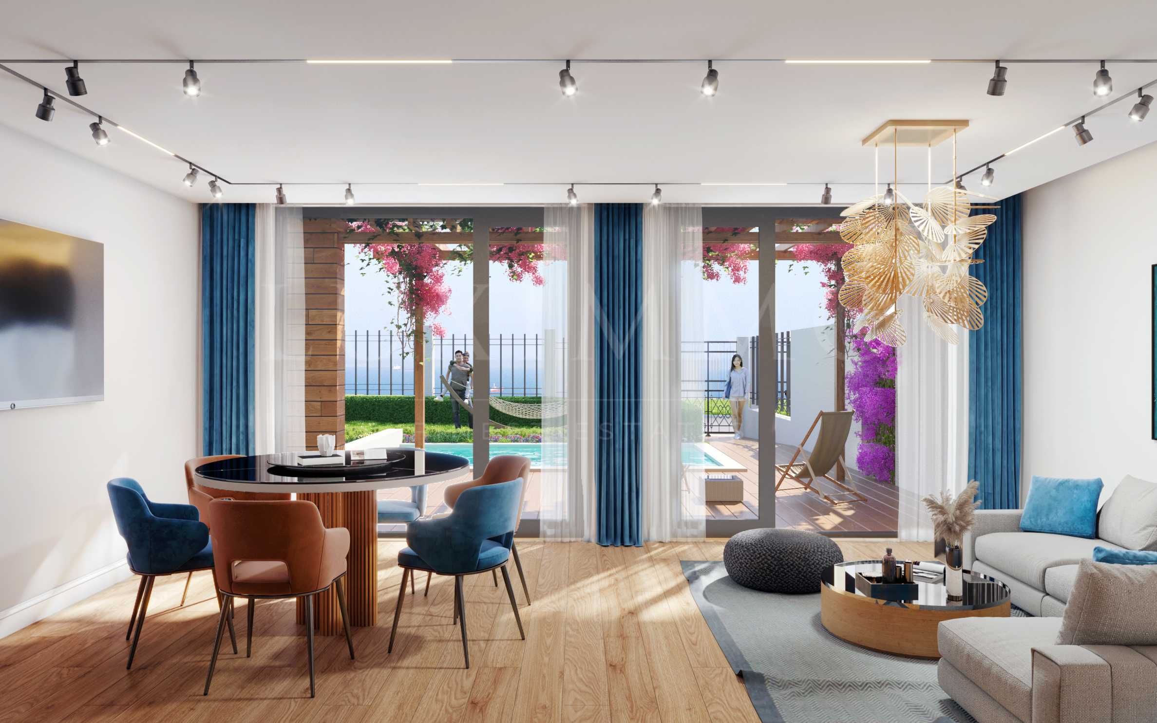 В концепцията на комплекса - съвременна архитектура, гледка към морето, частен басейн и паркинг, богато озеленяване, удобно и практично градоустройство на терена.
