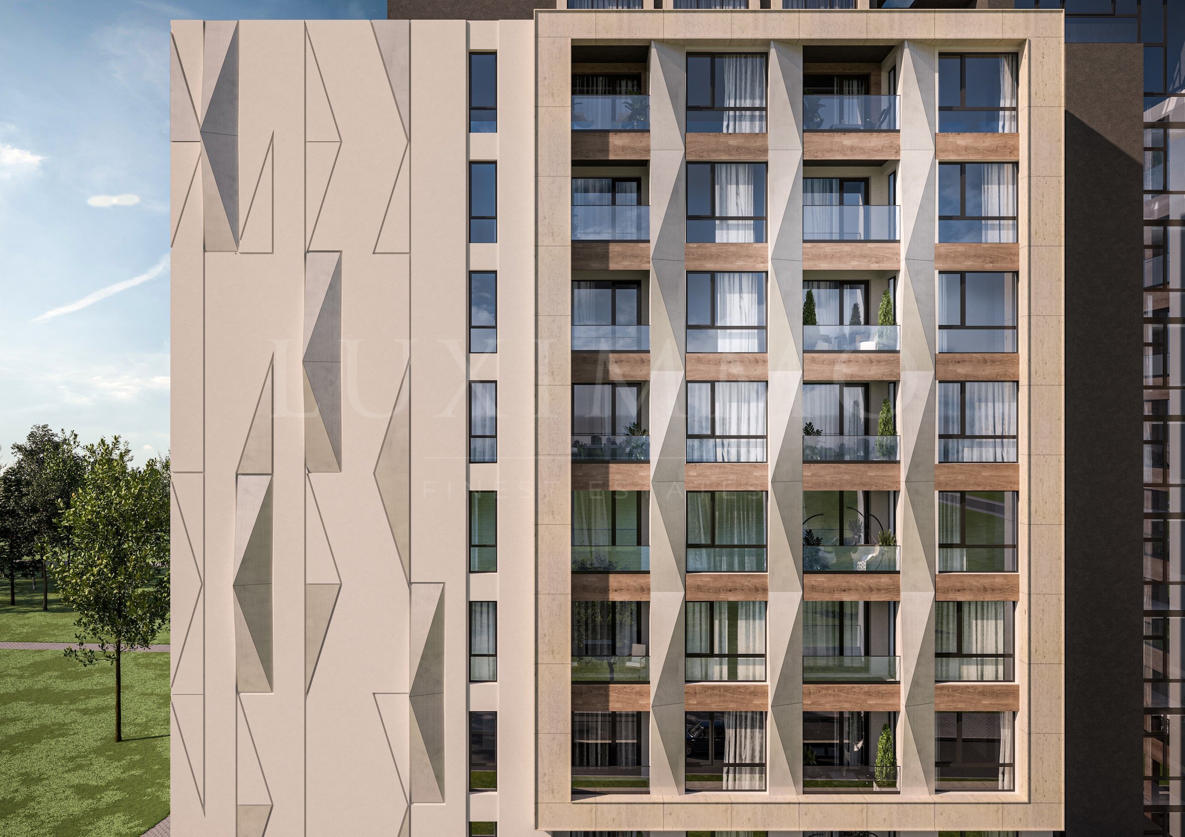 Разпределени на 9 етажа и партер, в сградата са проектирани 159 имота: двустайни, тристайни и четиристайни жилища, както и паркоместа на открито и подземни паркоместа и гаражи. Имотите се продават в степен на завършеност по БДС.