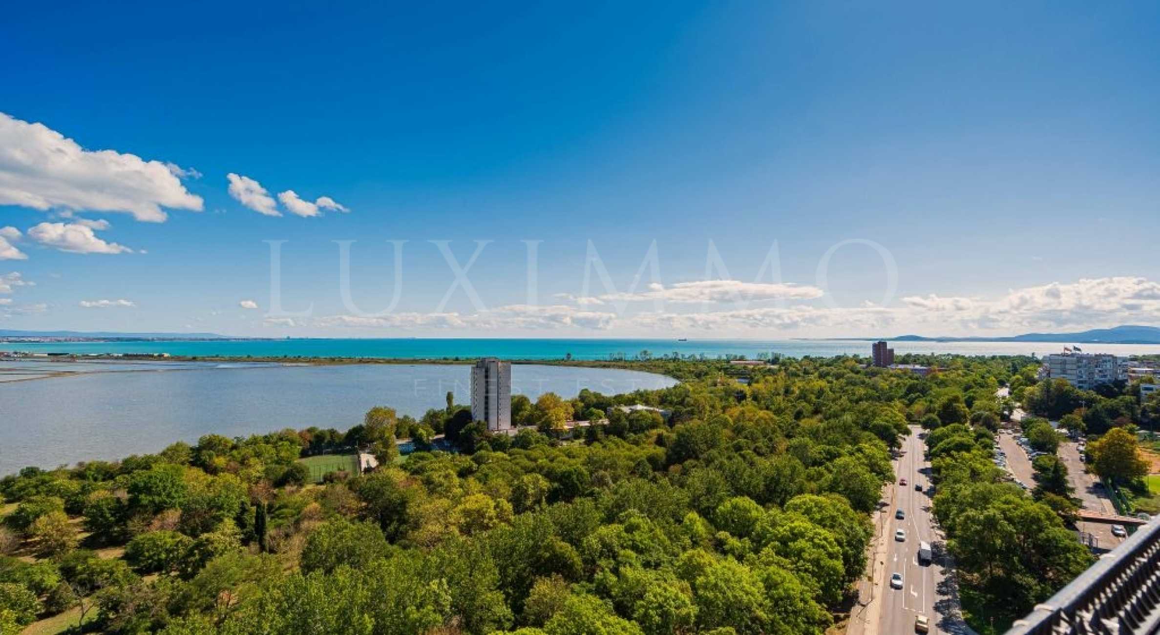 Представяме първокласен тристаен апартамент с фронтална гледка море, разположен на 13-ти етаж в емблематична сграда с удобства в гр. Бургас.