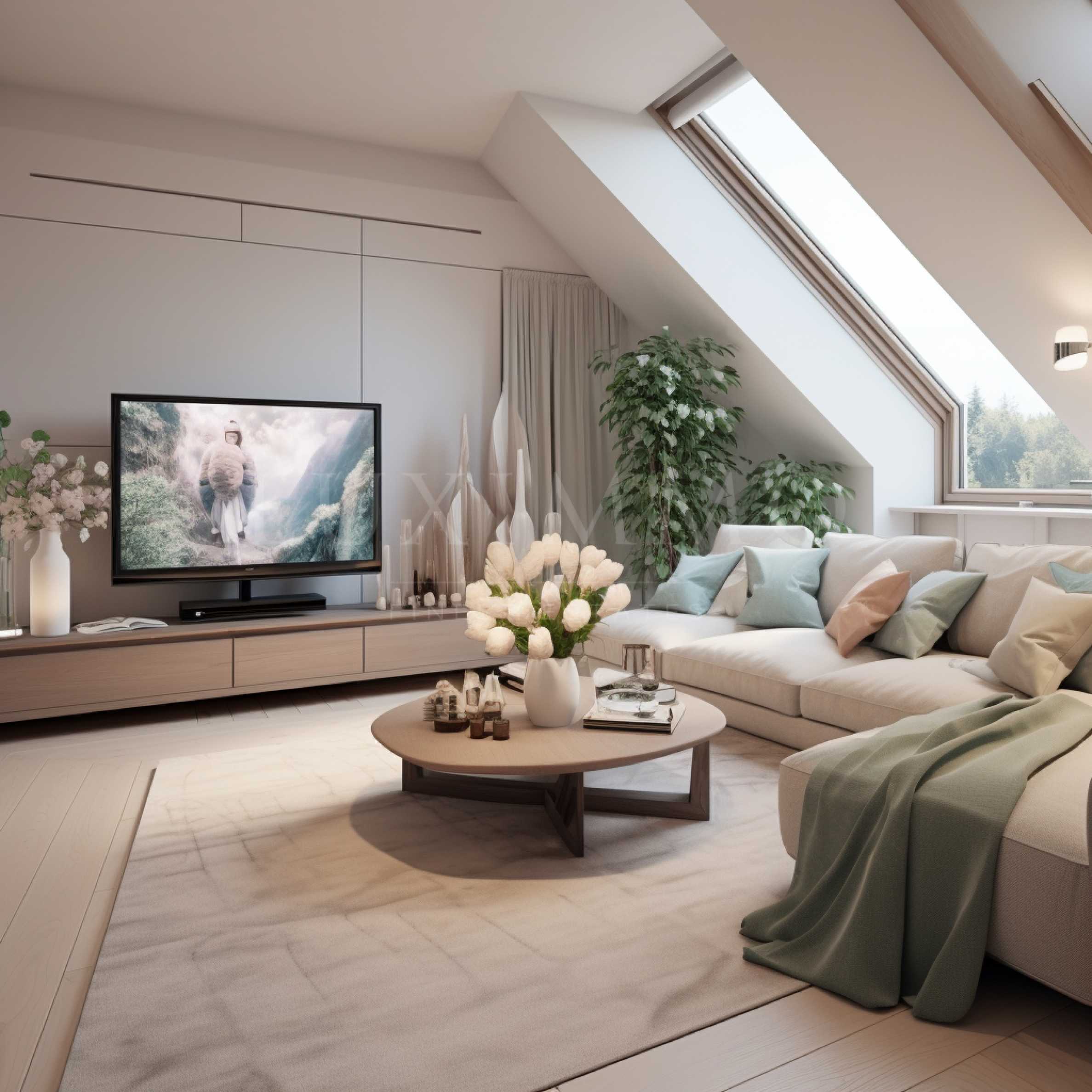 Изображенията с довършителни работи и обзавеждане са примерни.