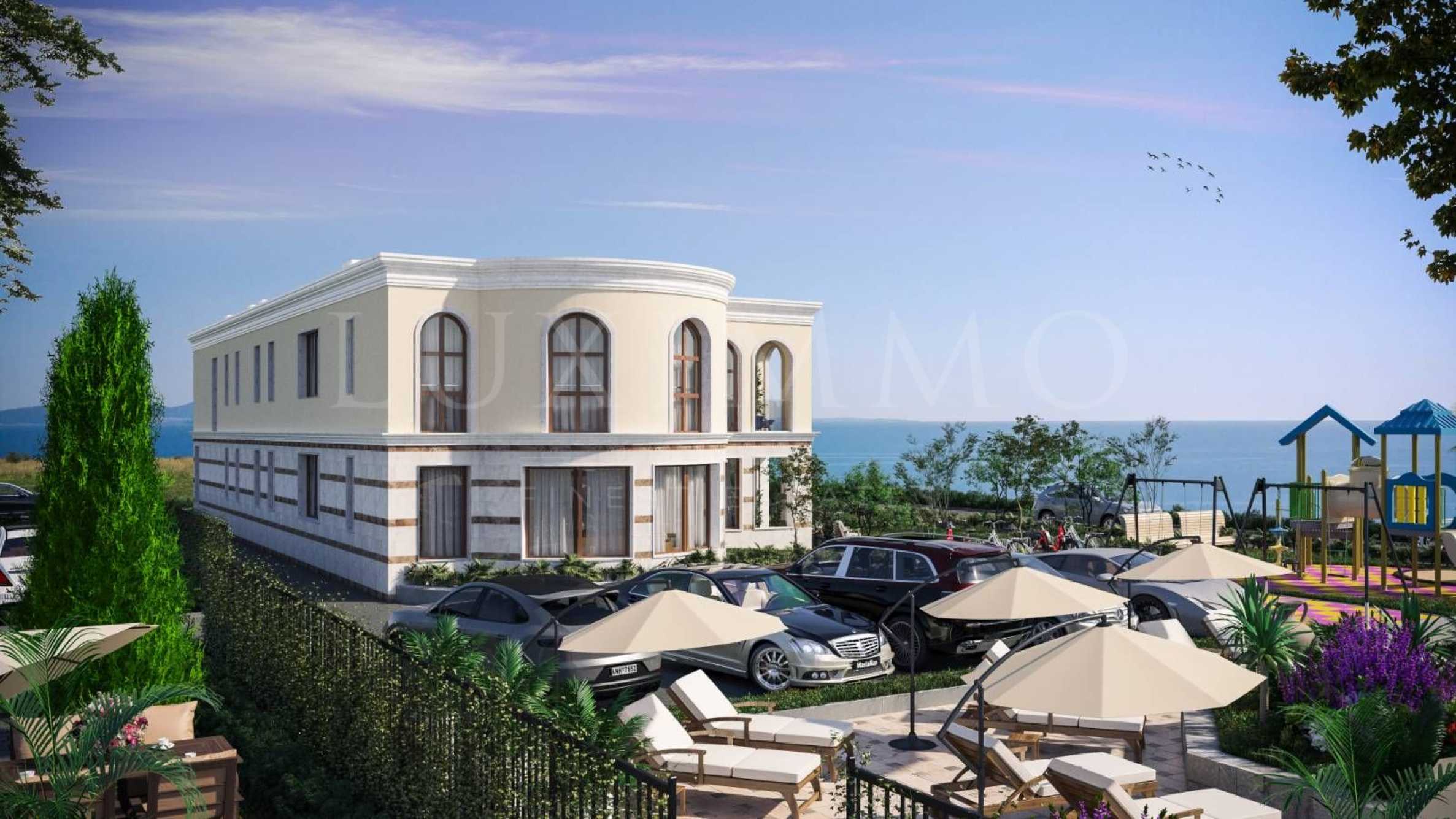 Представяме за продажба тристаен апартамент в нова, елегантна сграда със собствен плаж, между гр. Бургас, кв. "Сарафово" и Поморие.