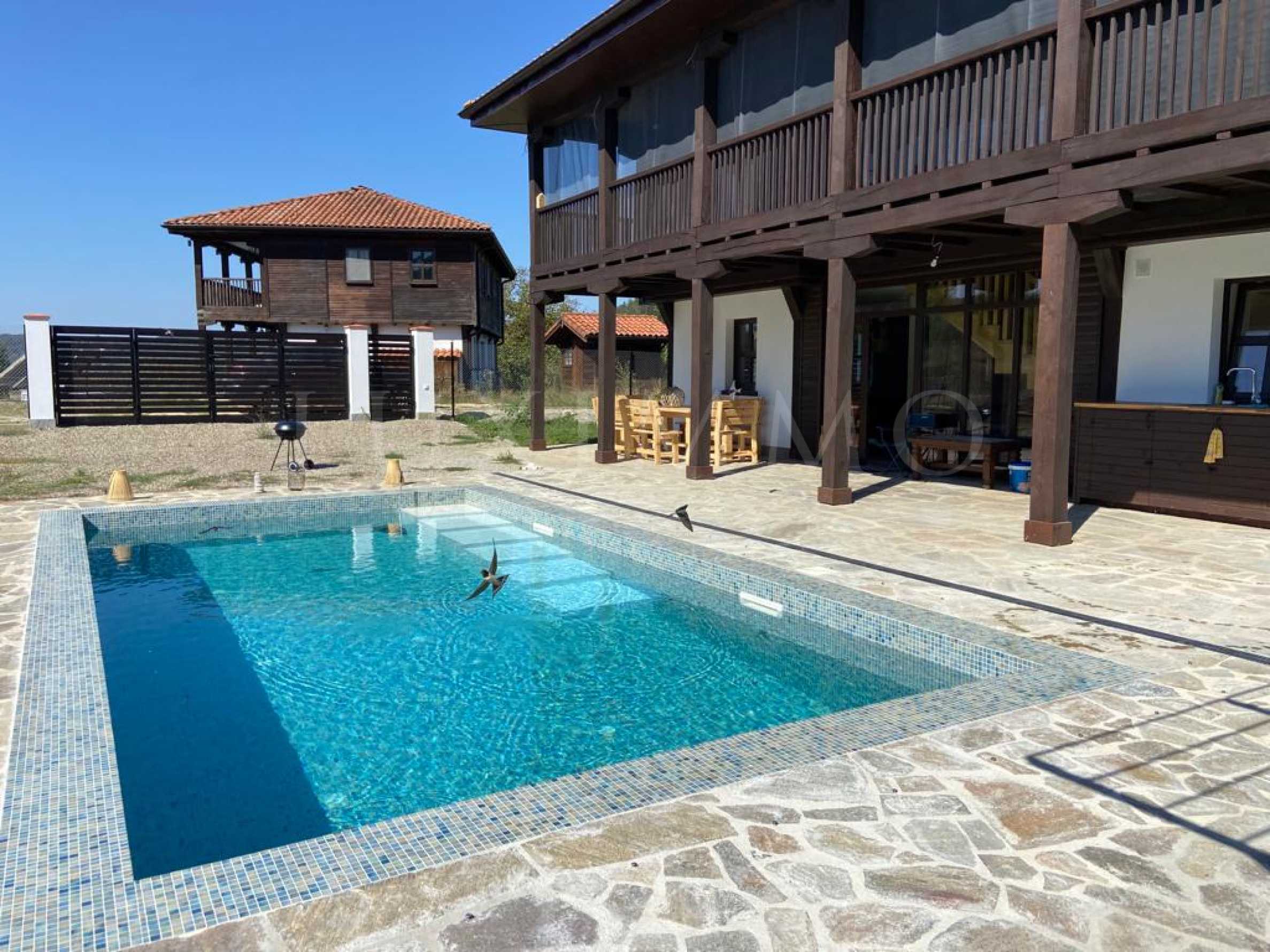 Имотът е с РЗП - 195 кв.м със собствен басейн и двор с площ от 720 кв.м.
