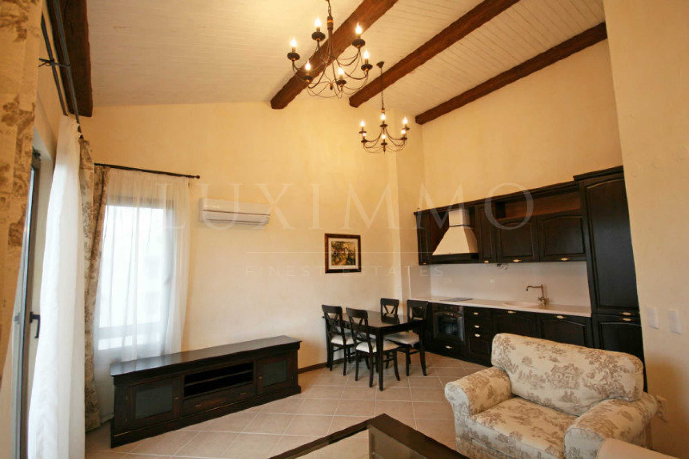 Мебелите в апартамента са изпълнени по индивидуален проект, от масивна дървесина и са испанска изработка, всички осветителни тела са италиански. Плота на кухнята е от камък испанско производство. Апартаментът е оборудван с всичко необходимо, включително декоративните възглавници и пердета. Всички уреди са подвързани и готови за ползване. Стенните покрития са много качествени и изпълнени по специална технология.