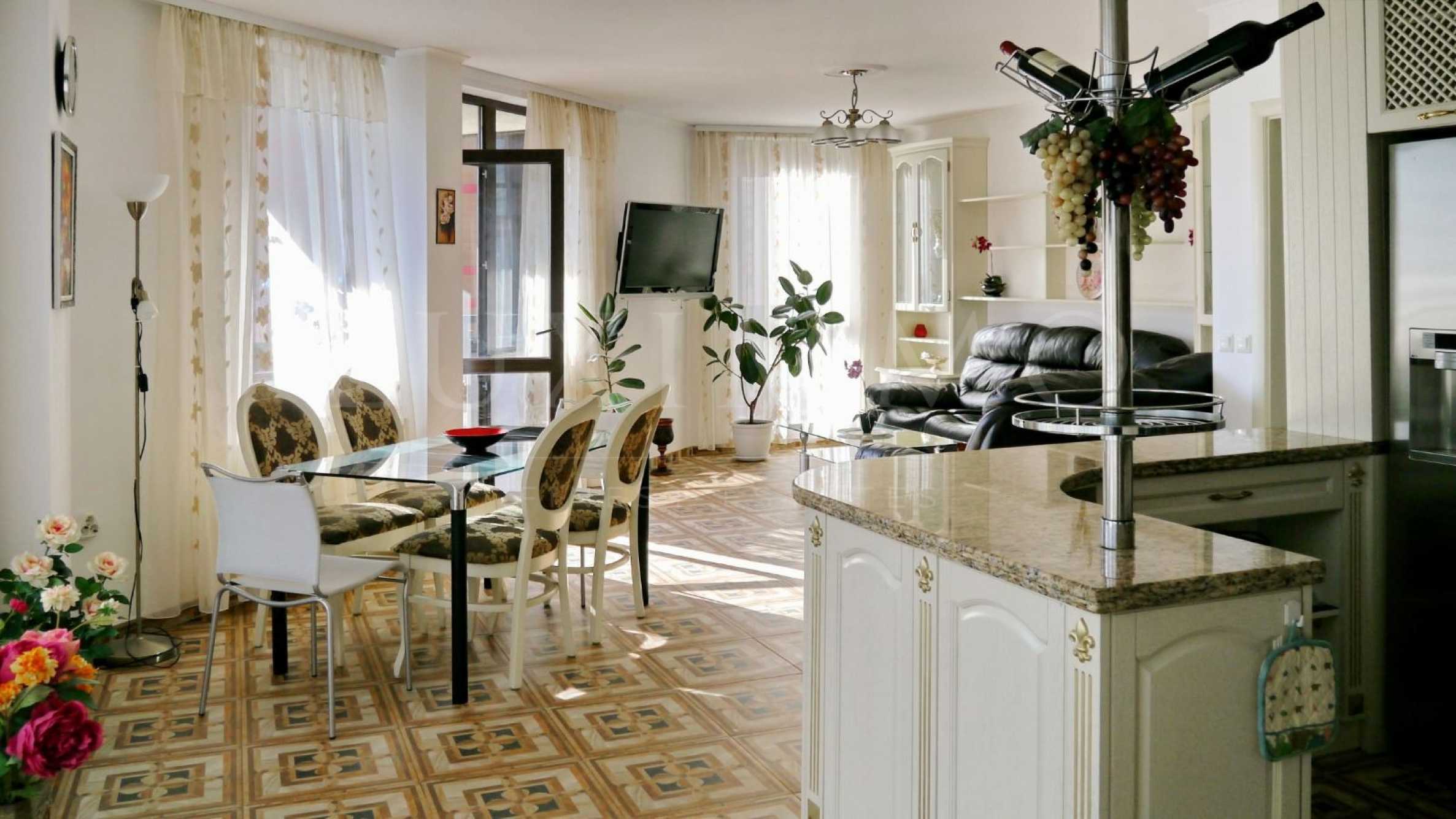 Комфортният апартамент от 172 кв.м, който Ви представяме за продажба, е първокласно мебелиран по индивидуален проект и е подходящ както за лично ползване, така и за инвестиция.