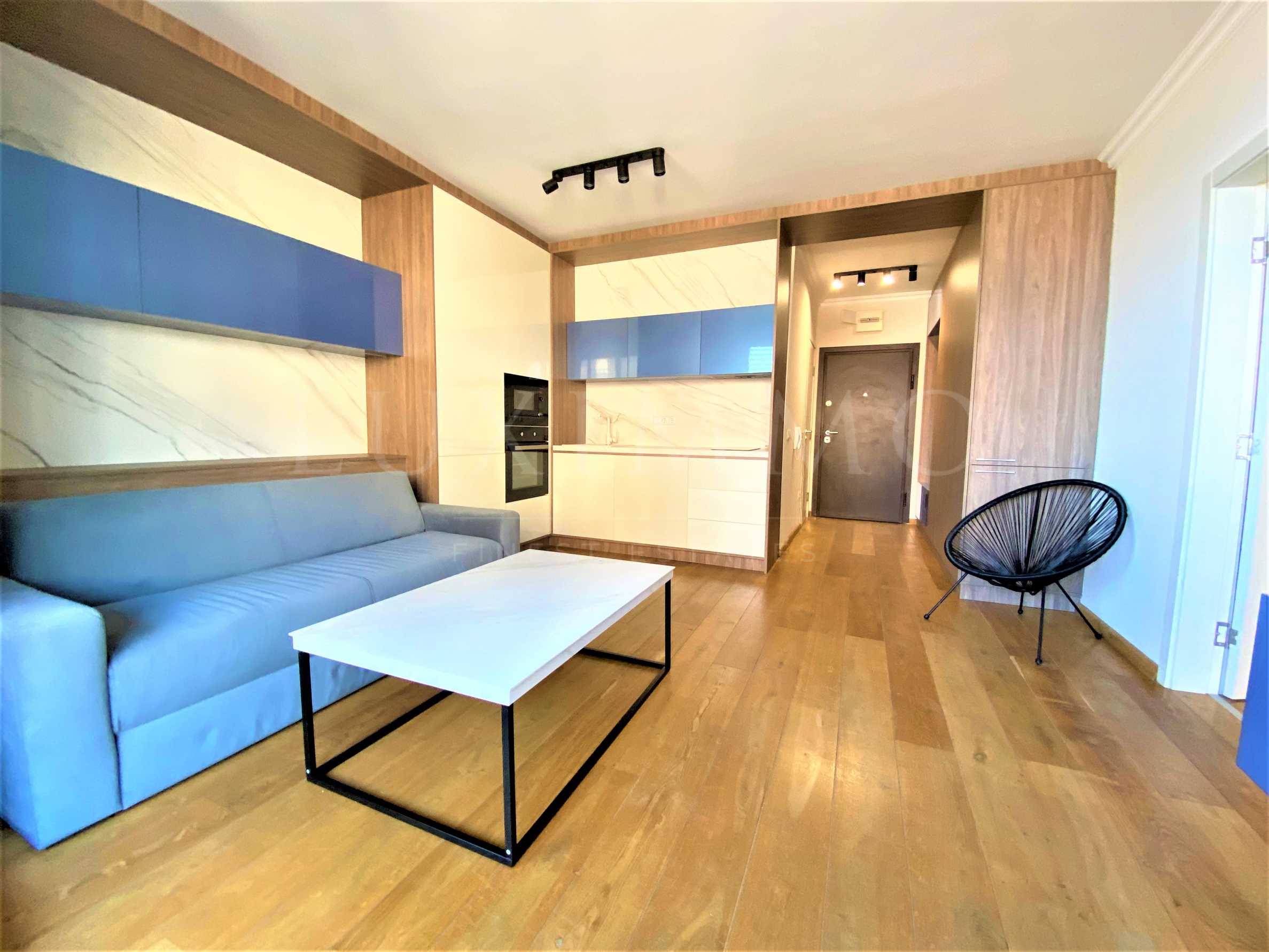 Имотът с обща площ от 64.88 кв.м е разположен на 4-ти етаж от 6 в нова, съвременна сграда с ефектна архитектура, изпълнена с висококачествени материали - луксозни общи части с гранитогрес, видеодомофон, асансьор на Orona и др. Състои се от дневна с кухня, спалня, баня с тоалетна и тераси с гледки към близкия плаж.