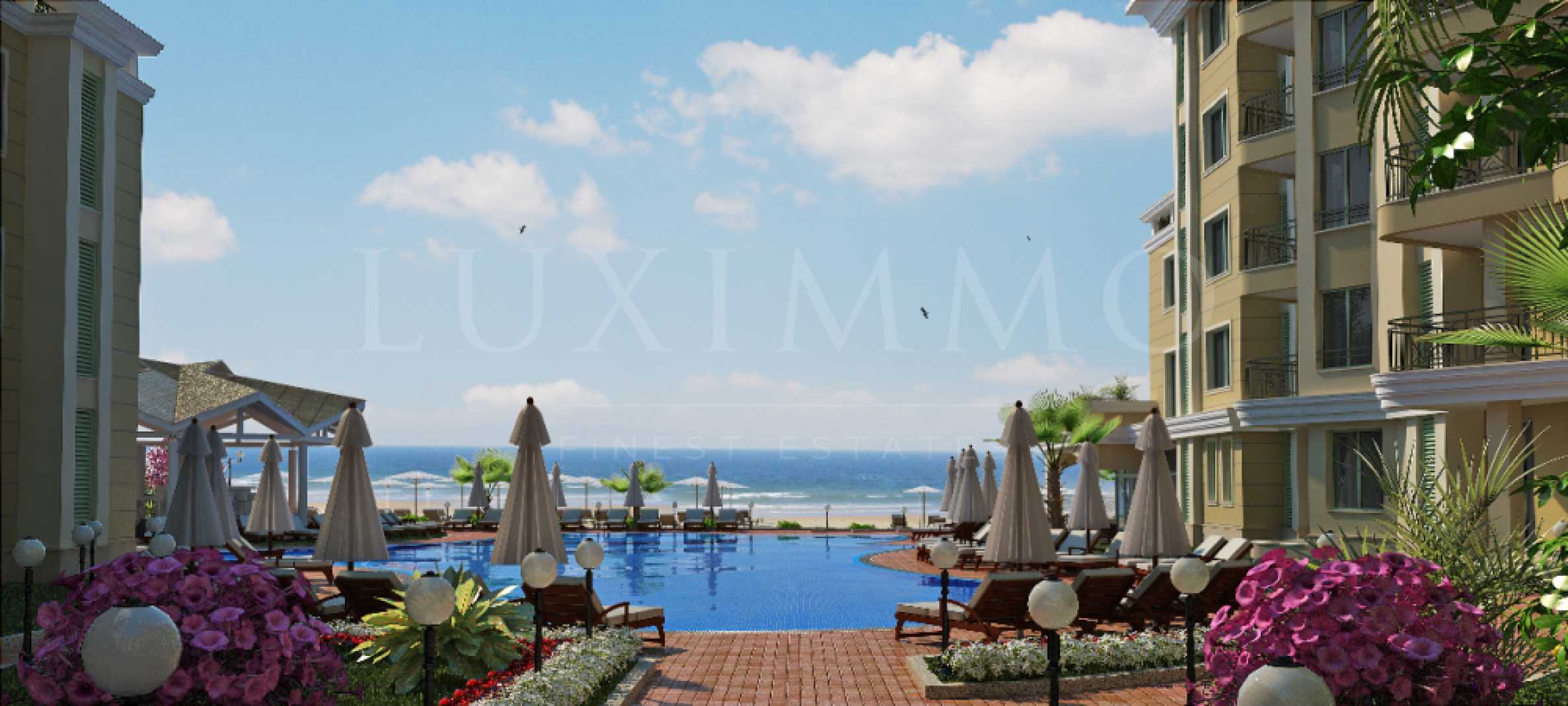 Представяме за продажба тристаен апартамент с фронтална морска панорама в луксозен СПА комплекс на брега на морето в Поморие.