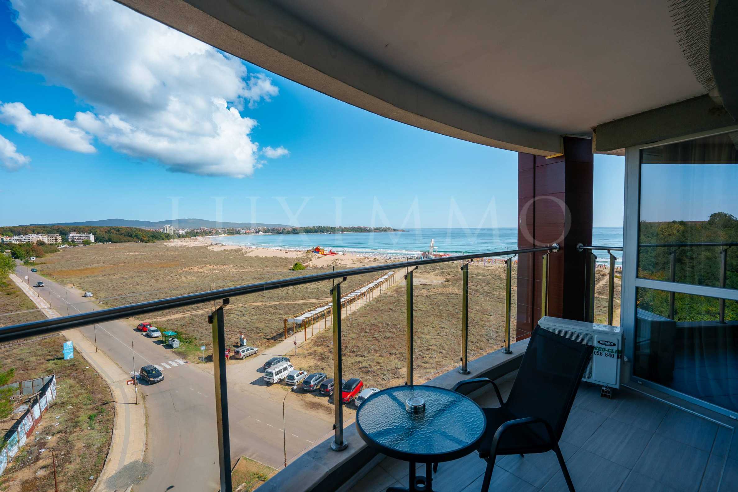 Имотът е с обща площ от 141,83 кв.м, разположен на 7-и етаж, изключително светъл с красива гледка към морето, плажа и залива.