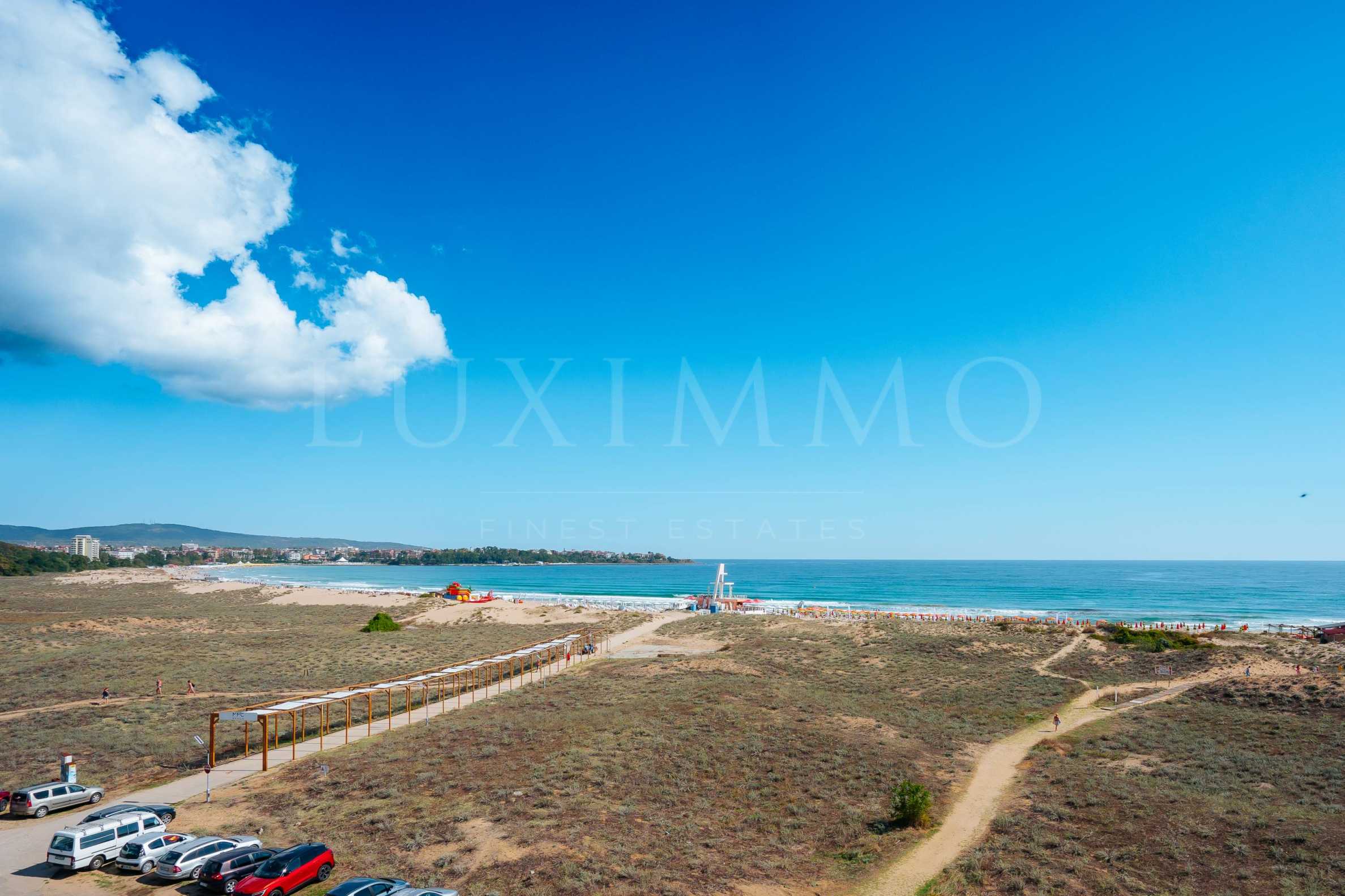 Представяме за продажба разкошен тристаен апартамент с фронтална панорама море, в съвременен 5-звезден комплекс на първа линия море в Приморско.