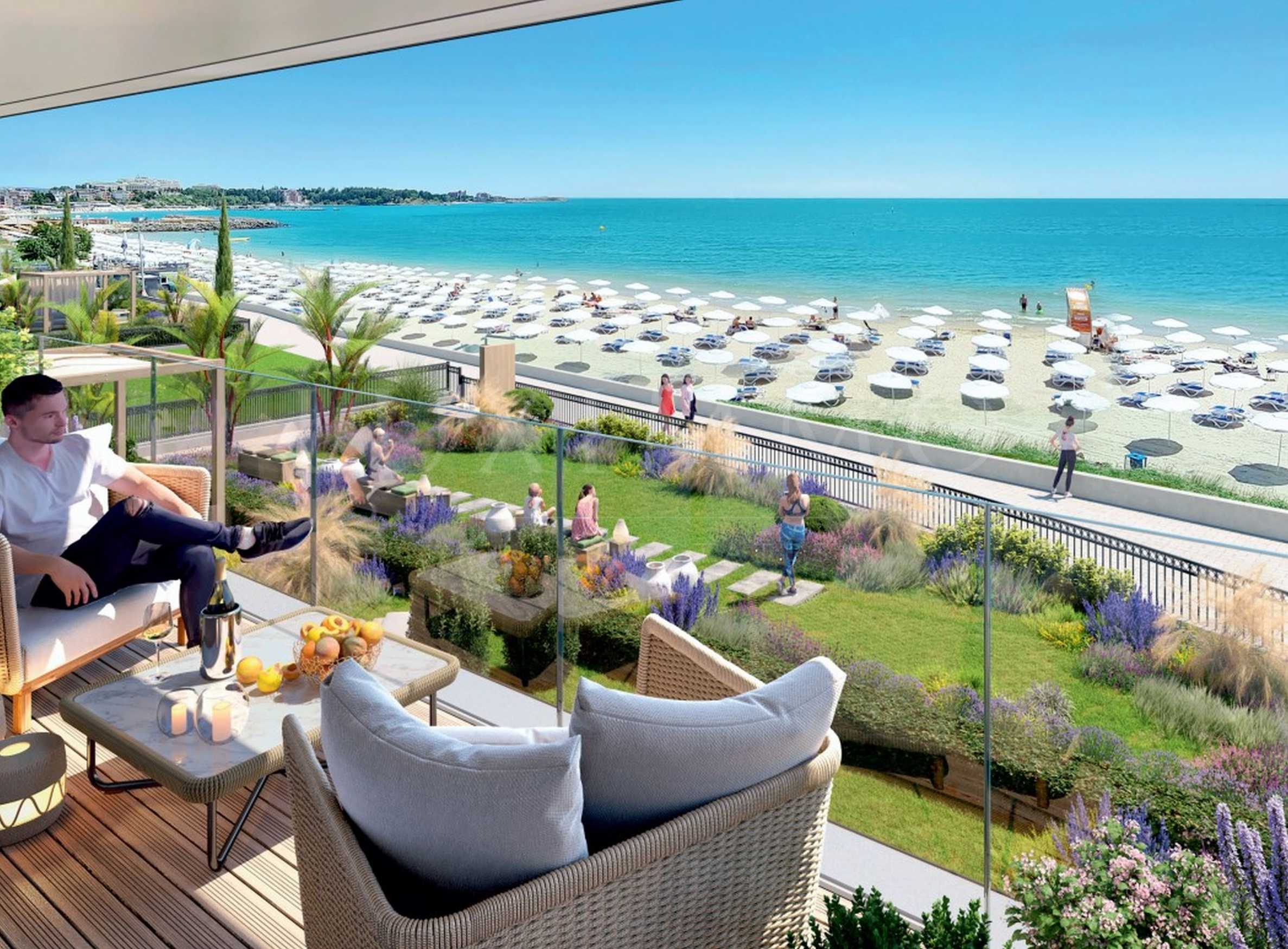 Проектиран в модерен и елегантен архитектурен стил, комплексът впечатлява със своята изтънченост и фронтална гледка с директна морска панорама, прекрасно съчетаващ в себе си удобства, лукс и комфорт на самия бряг. Четири модерни сгради ще бъдат изградени на обща площ от 6200 кв.м, с богат и впечатляващ ландшафтен дизайн, отличаващ се с множество живописно оформени цветни алеи, зони за отдих в паркова среда, зелени пространства за разходка.