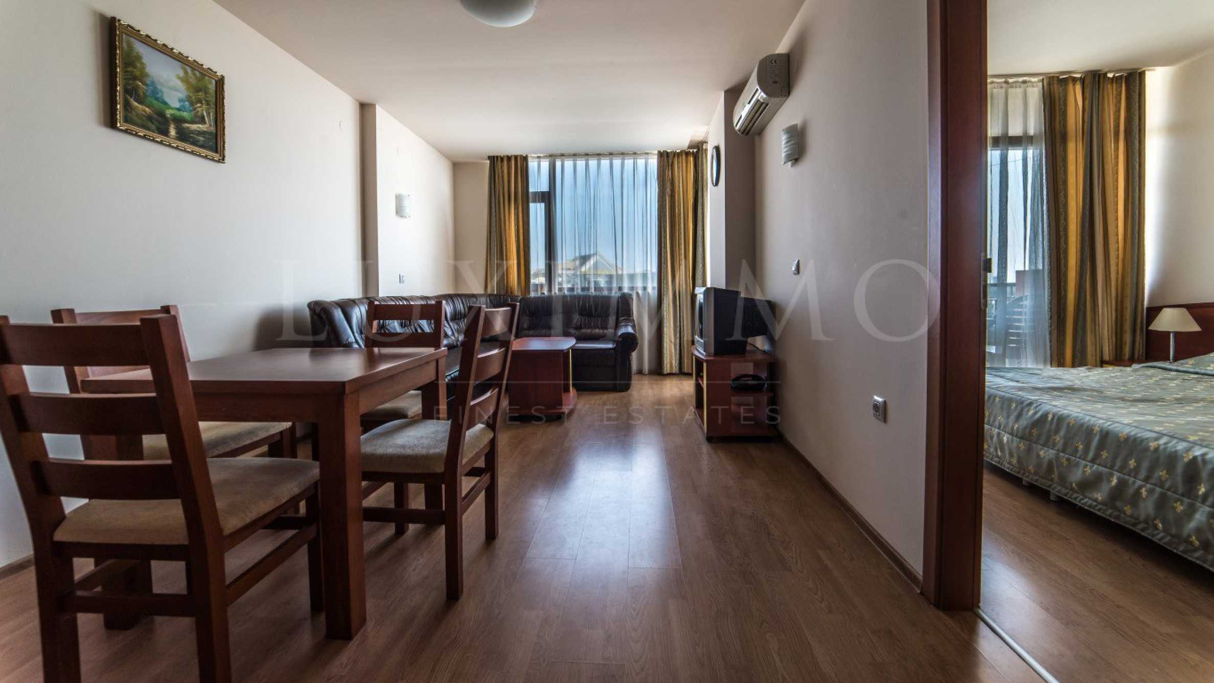 Апартаментът се намира в морския курорт Слънчев бряг, в северната част на курорта, в апартхотел от затворен тип, в развит район на морския курорт, близо до хотели и ресторанти, на няколко мин. пеша от красив пясъчен плаж.