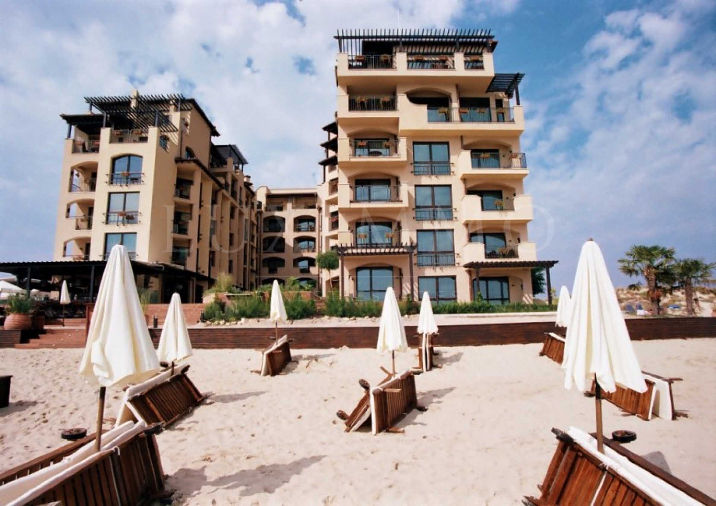 Двустаен апартамент от 83.40 кв.м. за продажба на втори етаж в елегантен комплекс, разположен на самия морски бряг, сред екзотичните дюни, с изглед към Стария Несебър в Слънчев бряг.