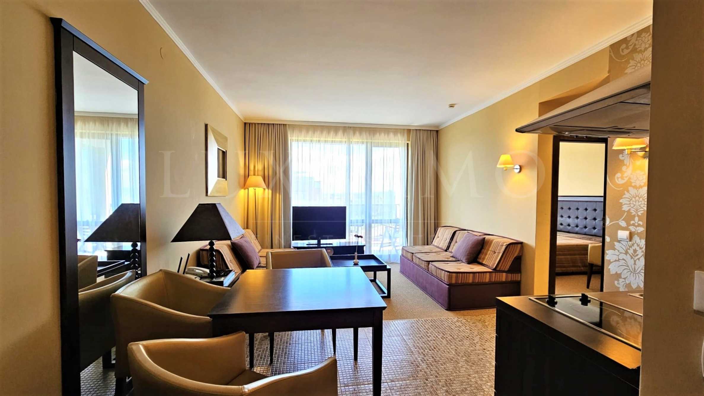 Напълно обзаведен и оборудван с разкошна мека мебел и качествени електроуреди.