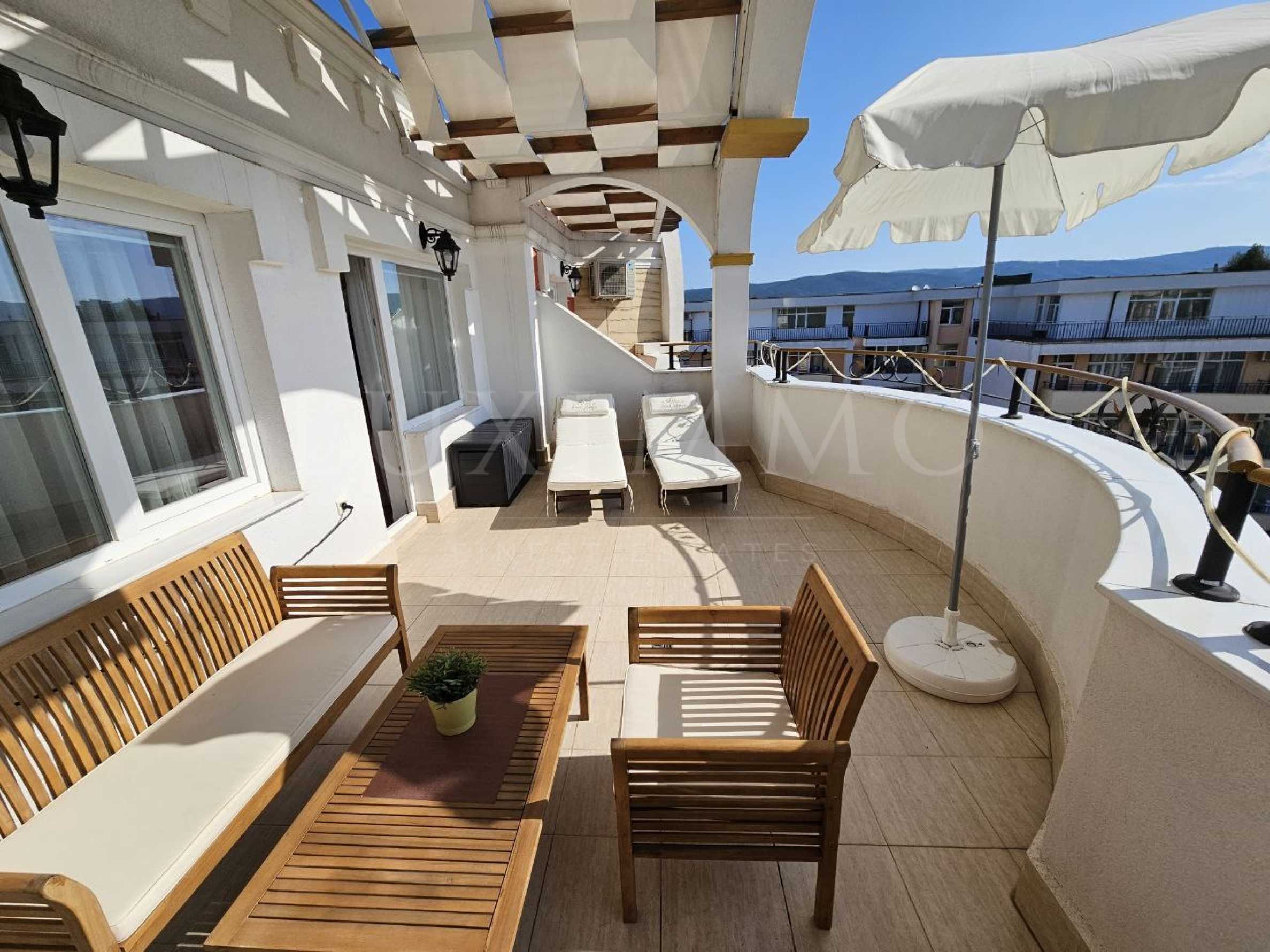 Студиото е мебелирано в стила на хотелската част. Продава се с мебели и техника, с оборудвана кухня, прекрасна зона-спалня, страхотна панорамна тераса с изглед към курорта.