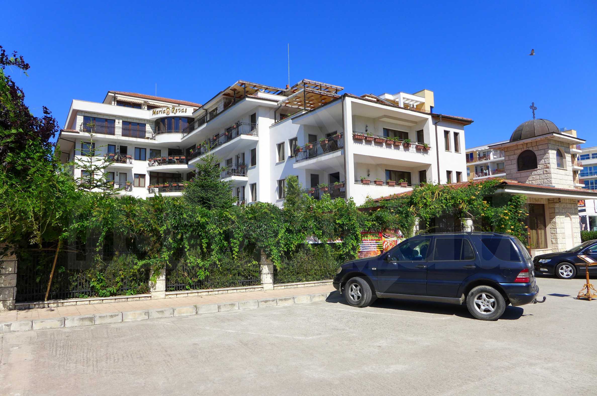 Луксозната вила „Мария Ревас” е разположена в южната част на ваканционното селище, едва на 200 м от плажа. Имотът е с РЗП - 2 745 кв.м. и прилежащ терен с площ - 1 522 кв.м. Комплексът разполага с един ВИП апартамент, 13 апартамента с една спалня и хол, 4 апартамента с по две спални и по две бани и тоалетни, 5 студия и 4 двойни стаи. Всички апартаменти и студия са с уникален и много стилен дизайн. Мебелите са поръчкова, изработка от масивен дъб. Стаите са оборудвани с телевизор с цифрова телевизия, климатик, локално парно отопление, телефон, мини бар, интернет достъп. ВИП апартаментът се състои от просторни спалня и хол с уникално обзавеждане - специална поръчка от ратан, с големи тераси и джакузи и прекрасен морски изглед.