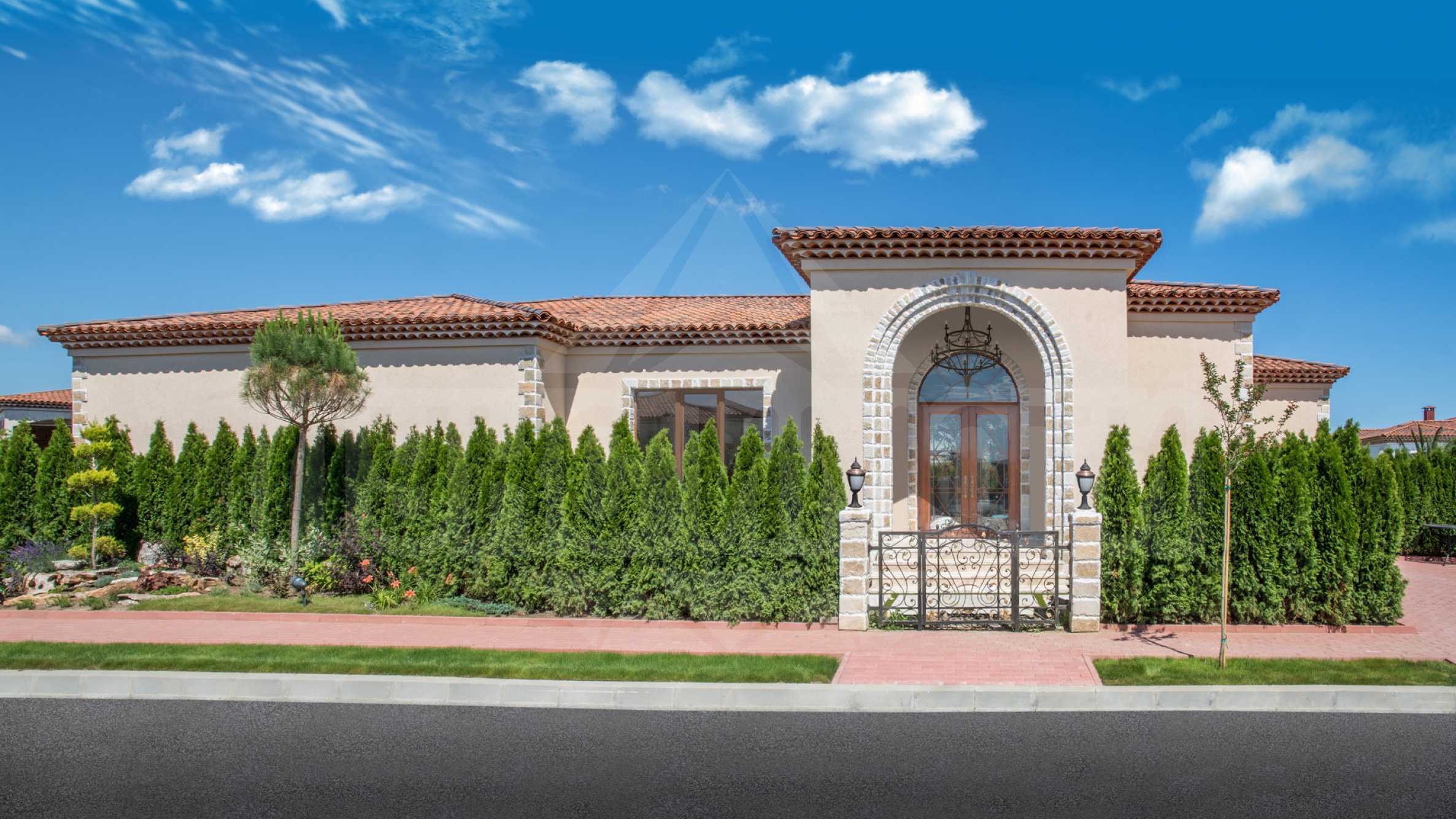 Вилата се радва на земна архитектура с елегантни решения , които са съчетани със слънцето и морето. Автентично изпълнените детайли в традицията на средиземноморската архитектура, както и хармонията от уют и елегантност внасят екзотика във вашето ежедневие.