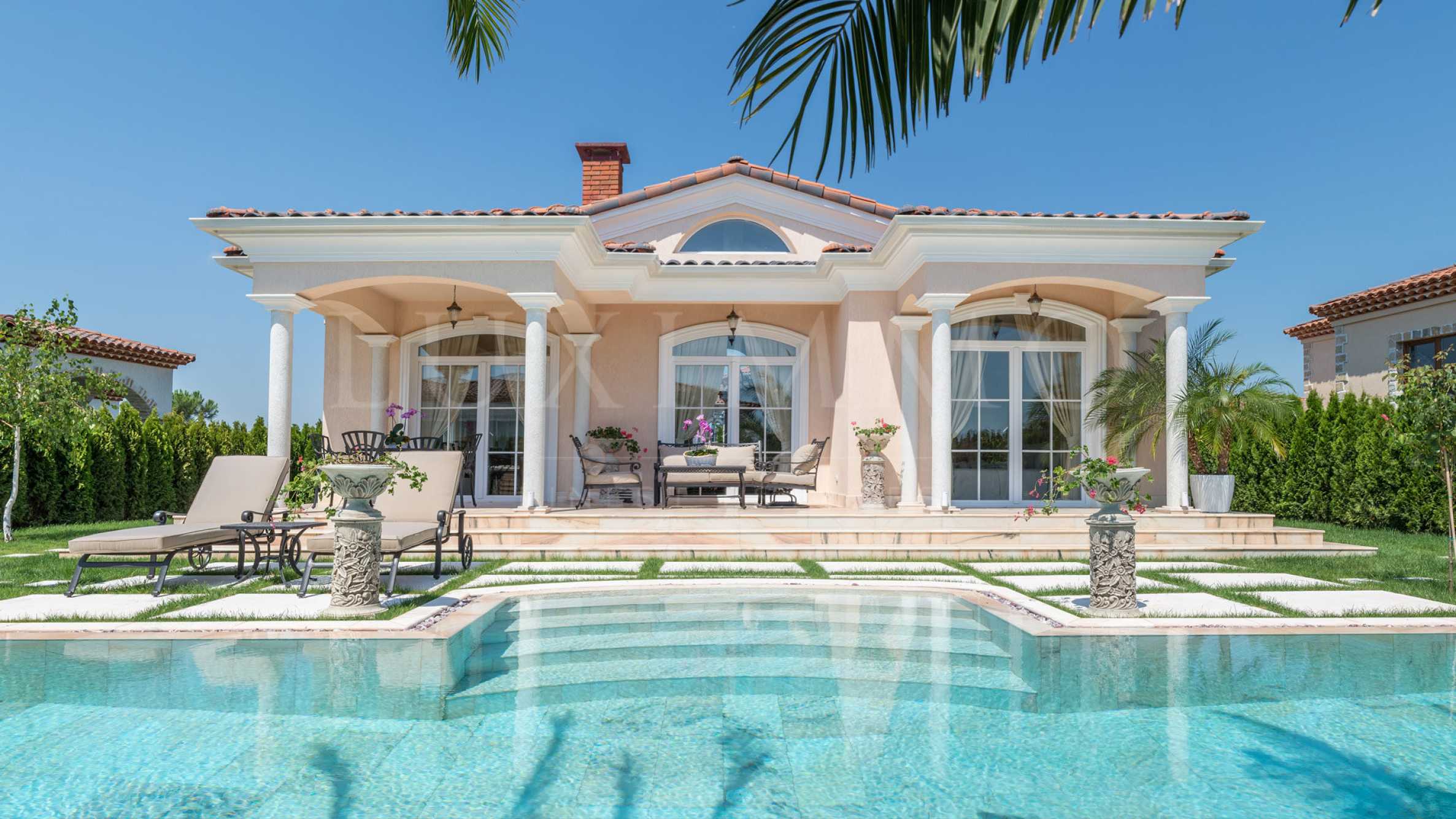 Този очарователен комплекс от разкошни вили с неподражаеми интериори, средиземноморска архитектура и неподправена красота във всеки детайл, е с концепция без аналог в страната и с качеството и на Европейско ниво. Проектиран с намерението да се превърне в приказно място за живеене, дори и за най-изисканите вкусове, комплексът е буквално истинско бижу.
