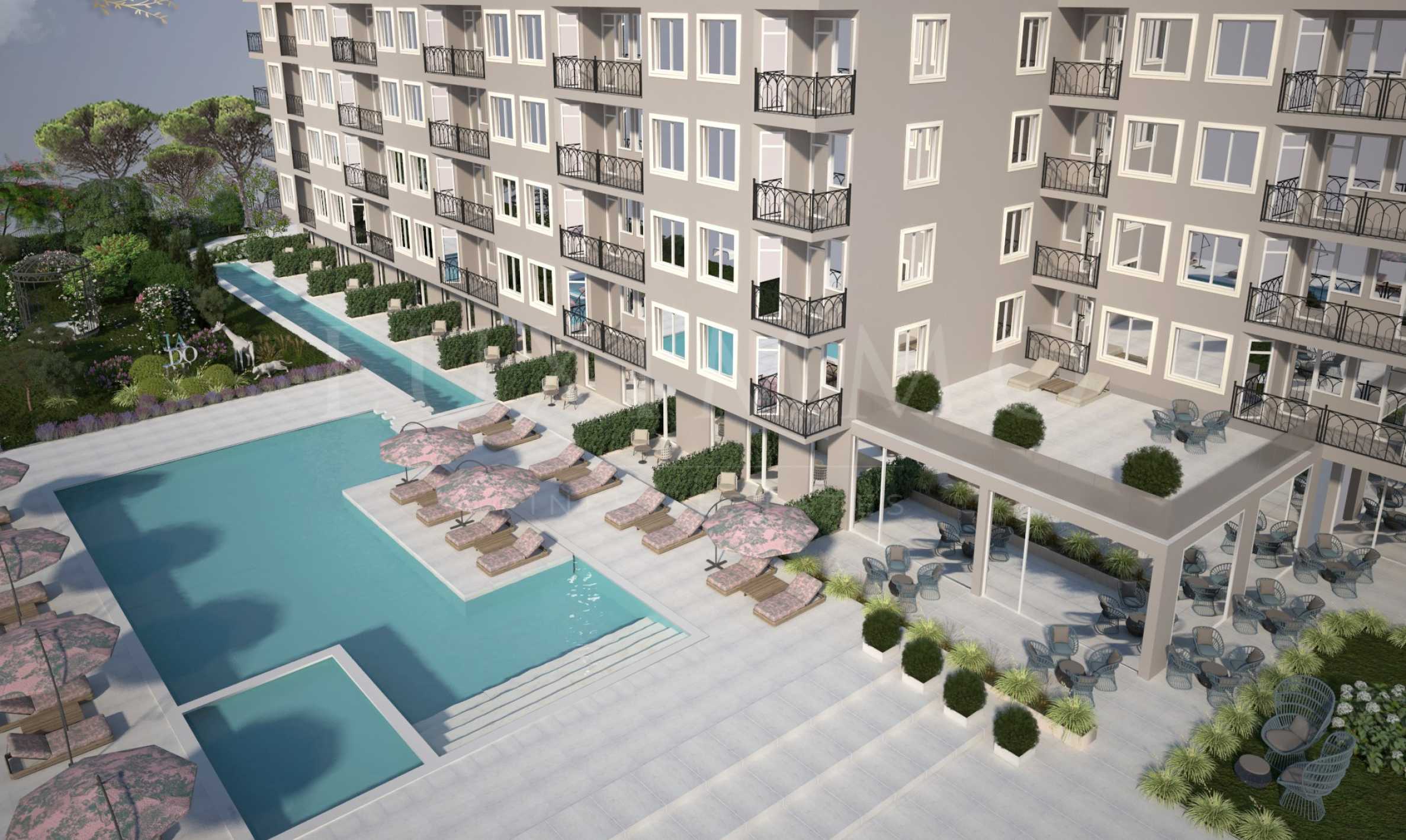 Разположен само на 250 метра от плажната ивица на Слънчев бряг, в непосредствена близост до най–атрактивните заведения за развлечение Zazu и Bedroom Beach, комплексът e вдъхновен от Френската ривиера и ще бъде изпълнен с висококачествени материали, в меки пастелни цветове, с дизайнерски басейни, богато озеленяване, красиви градини и зони за отдих.