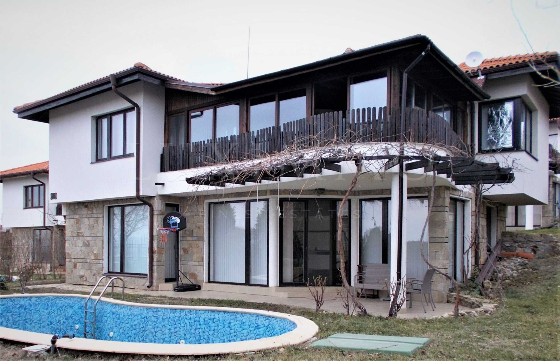 Представяме Ви привлекателна, напълно завършена (Акт 16), двуетажна вила с частен басейн, в популярния комплекс от затворен тип близо до Слънчев бряг.