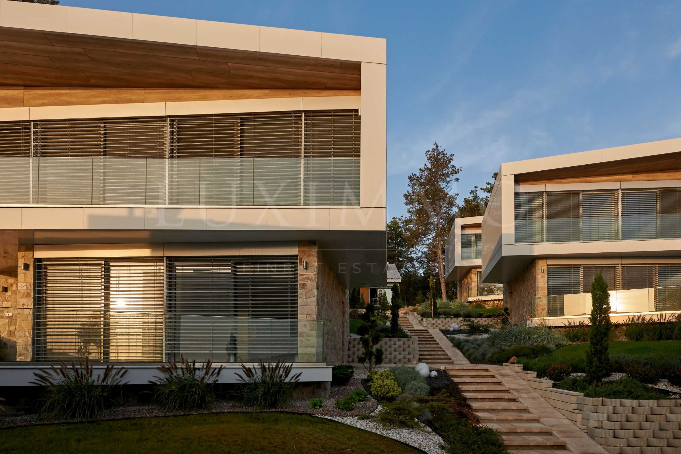 • за осигуряване на максимални гледки към морето, прозорците са френски тип, с голяма плъзгаща се част, за изобилие на естествена светлина и хармонично преминаване от интериора в екстериор и в същото време, имотите са оборудвани с електрически регулируеми външни щори по цялата фасада на първия и втория етаж, осигуряващи максимална защита срещу светлина и агресивна климатична среда;