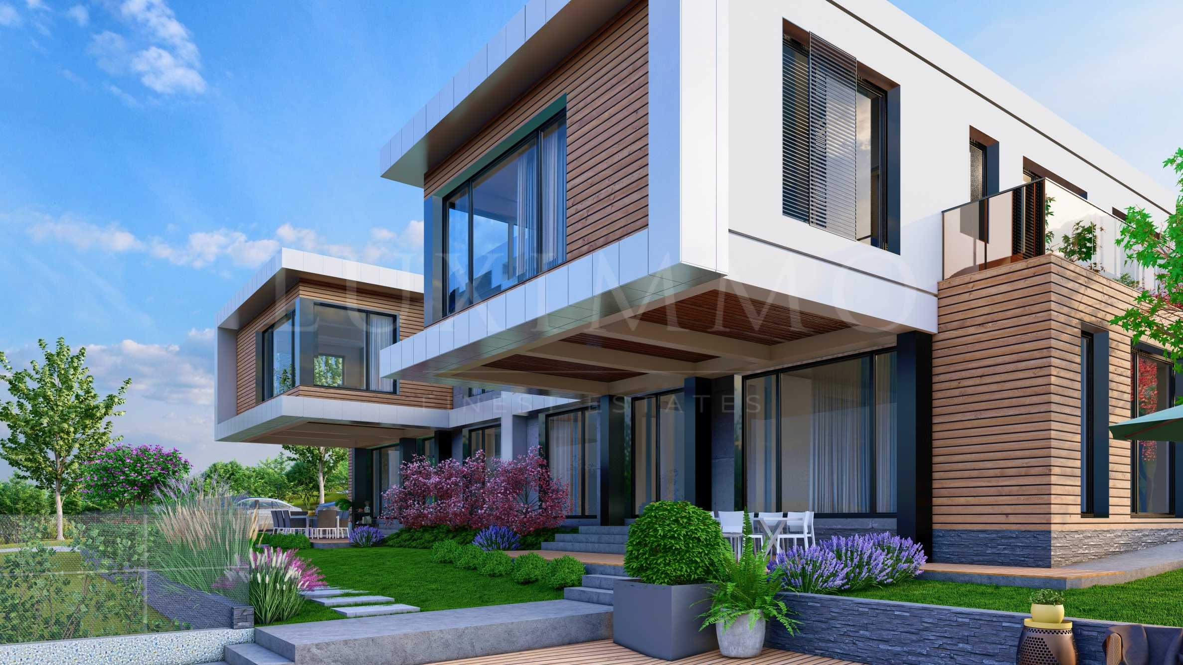 Къщата с РЗП от 378.70 кв.м е разположена в парцел от 916 кв.м, в който ще бъдат изградени басейн и втора къща със същата квадратура.