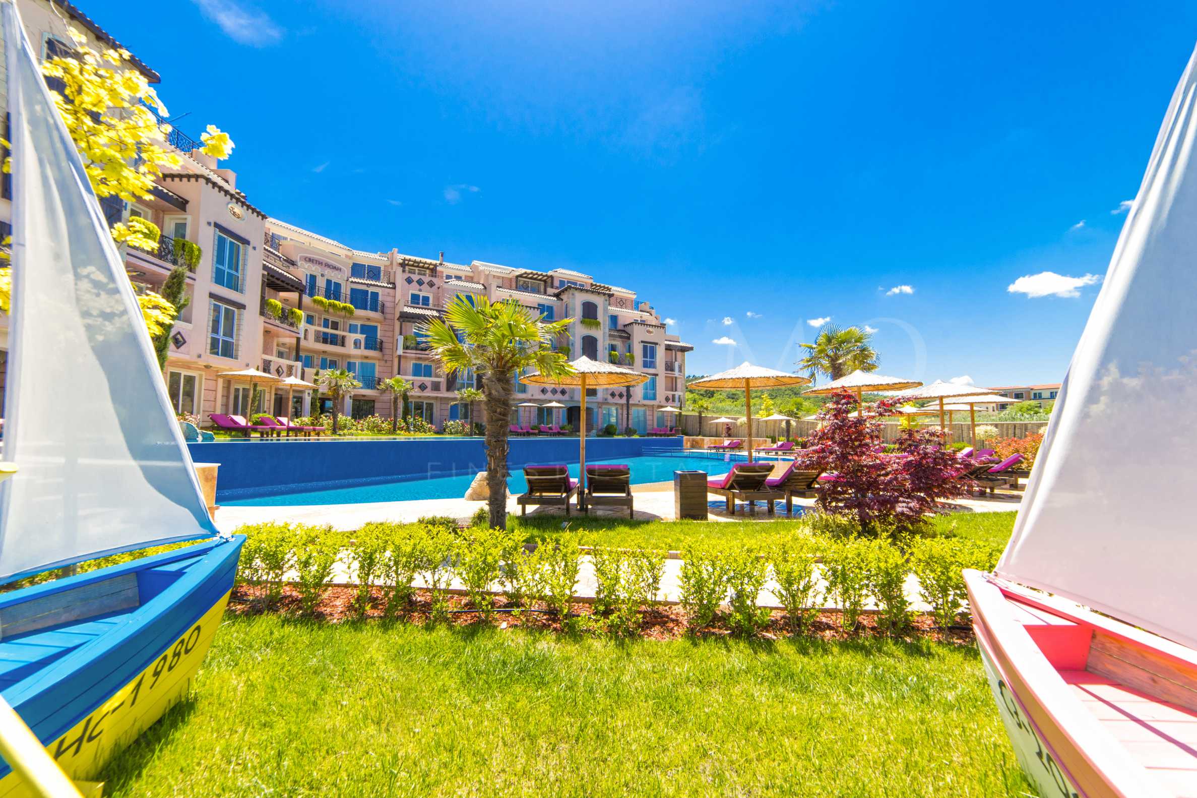 Представяме тристаен апартамент до ключ с две комфортни спални и гледка към басейна, разположен в отличителен морски комплекс с Акт 16 до плажа Каваци.