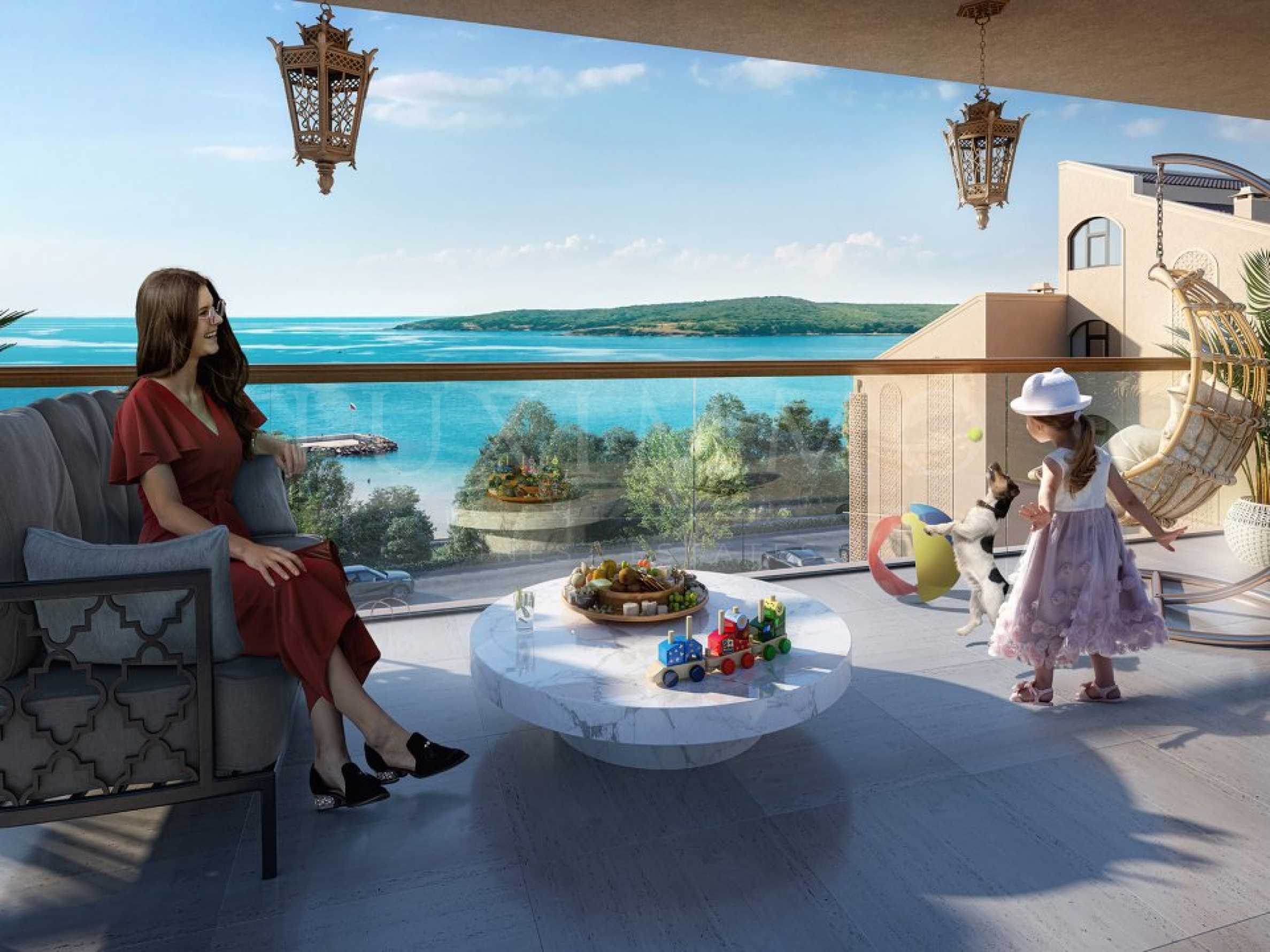 Имотът от 145,06 кв.м се намира на 2-ри етаж, има тераса от 14.21 кв.м, с източно изложение и гледка към морето. Състои се от удобен коридор, килер, баня/тоалет, дневна - 28,68 кв.м, спалня - 17.46 кв.м, втора спалня със собствен санитарен възел - 28,32 кв.м.