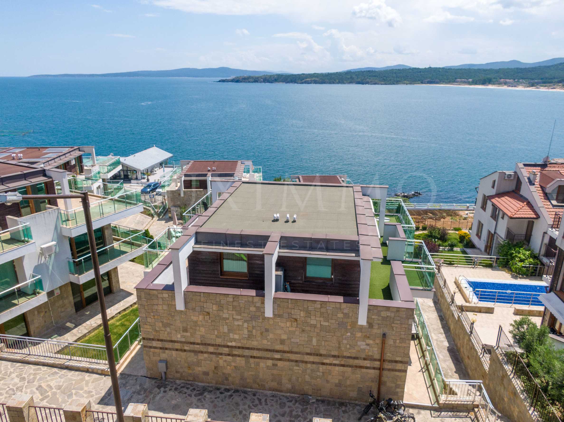 Мезонетът е част от модерен комплекс с басейн, паркинг и красива градина. Разположен е на абсолютна първа линия, на брега на морето, с удобен, целогодишен достъп.