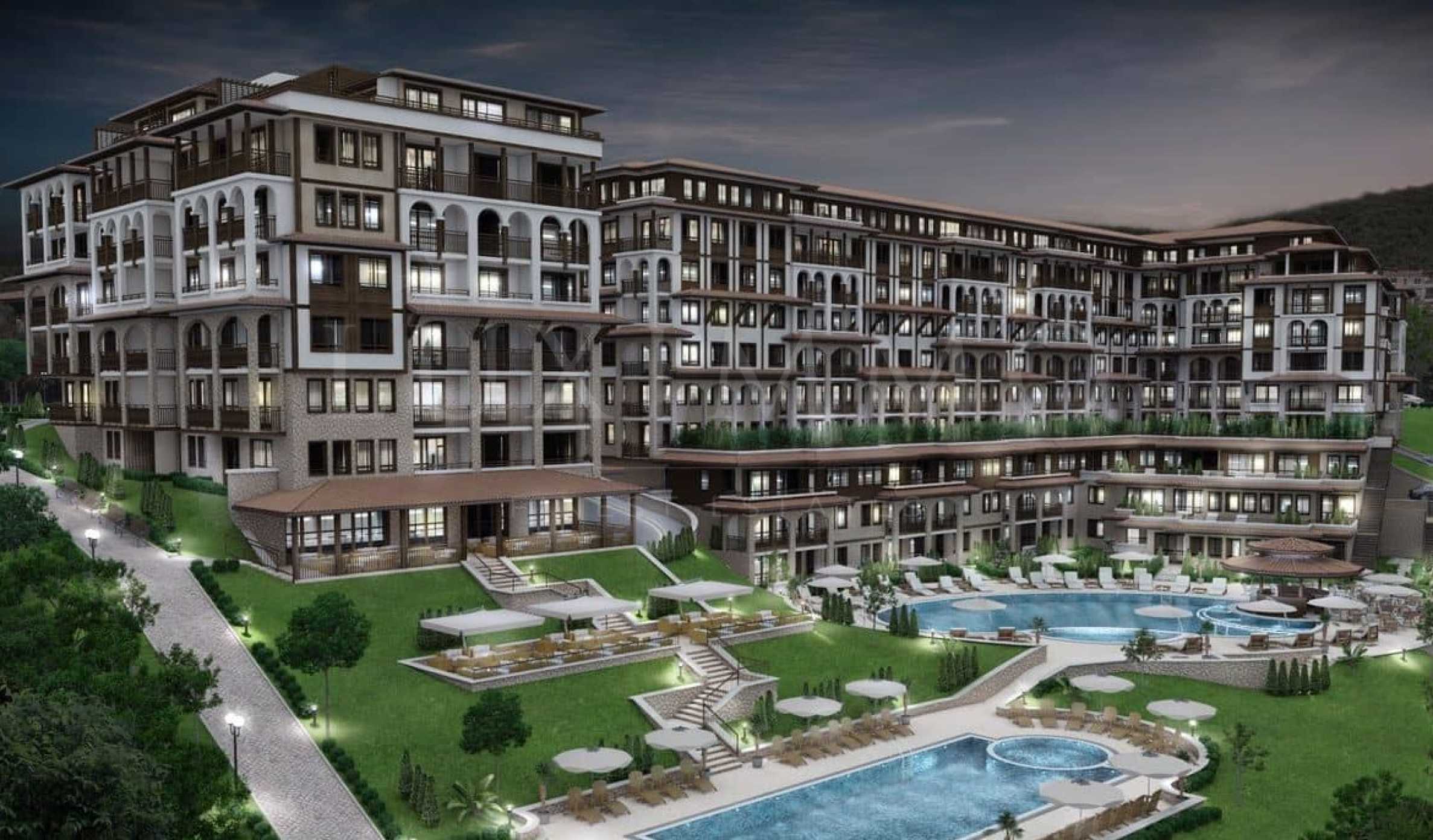 За удобството и уюта на обитателите, комплексът ще разполага с два големи басейна за възрастни и деца, бар на басейна и прекрасна, богато озеленена градина с екзотични дървесни видове и зони за релакс.