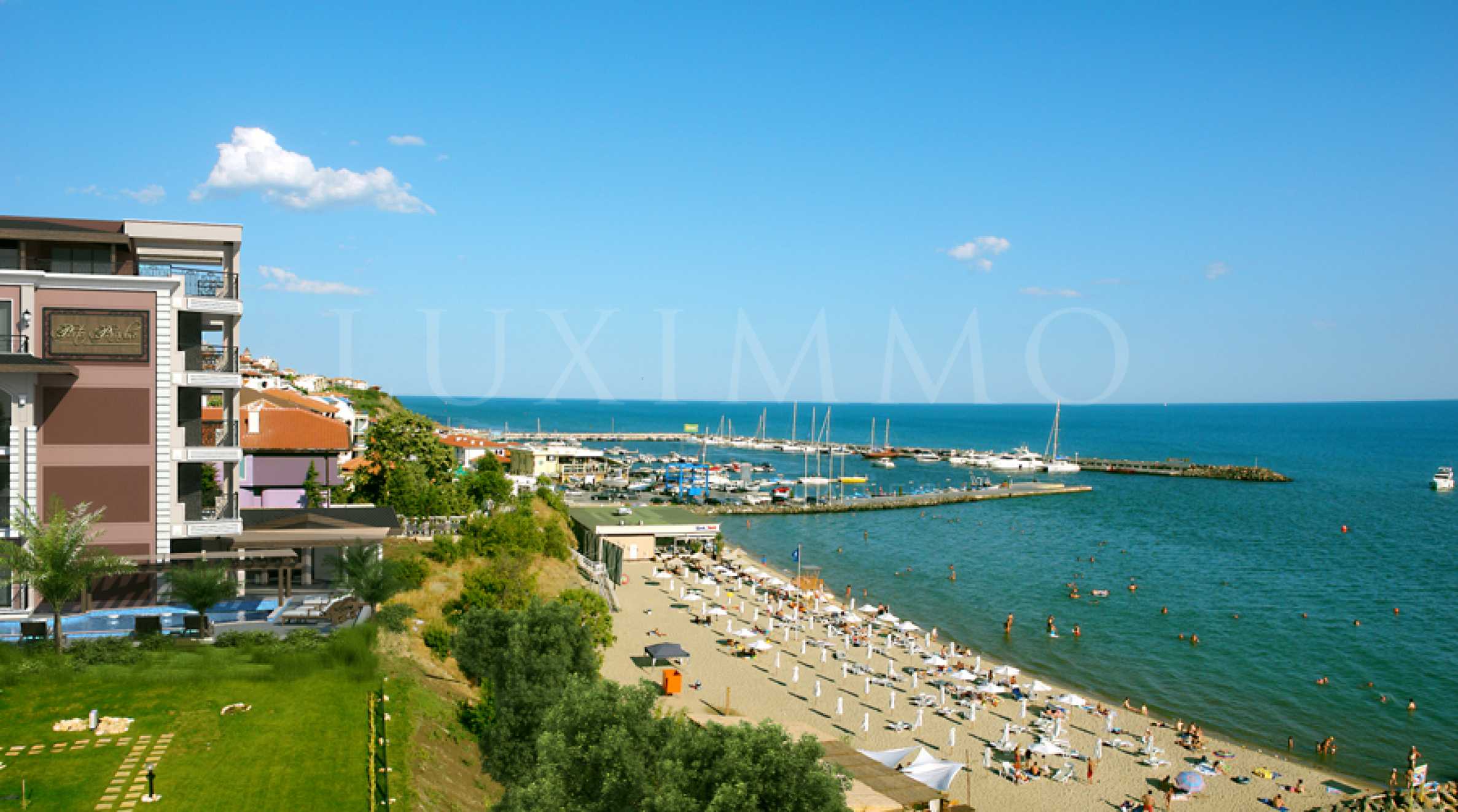 Ексклузивно предложение - първокласен двустаен апартамент, качествено завършен "до ключ" (без обзавеждане), разположен в популярния крайбрежен комплекс на първа линия до плажа, само на 100 метра от яхтено пристанище "Марина Диневи" в Свети Влас - "Порто Парадизо"/"Porto Paradiso".