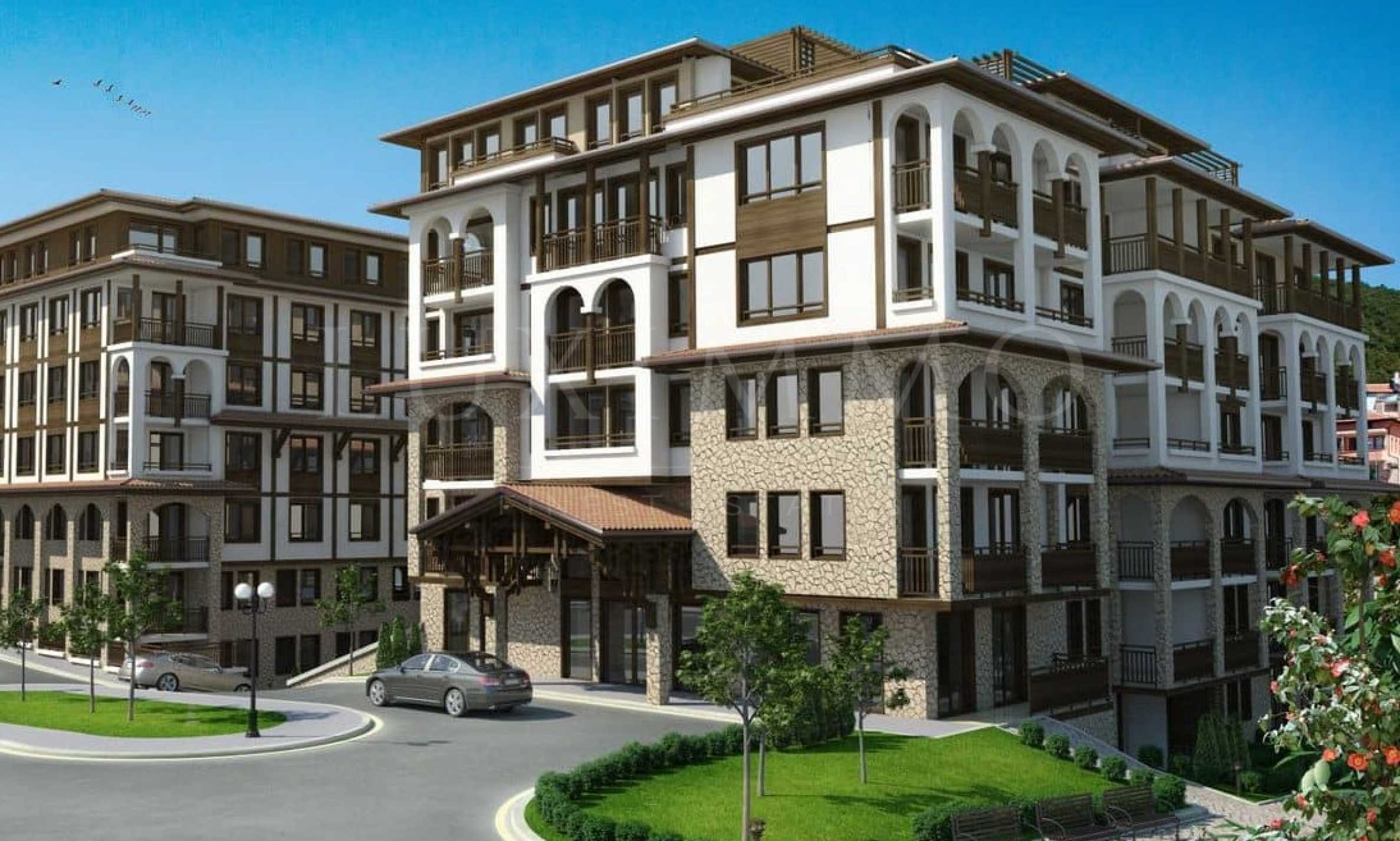 Представяме двустаен апартамент за продажба в нов комплекс с два басейна и екзотична градина, разположен на втора линия море, в близост до яхтено пристанище "Марина Диневи" в гр. Свети Влас.