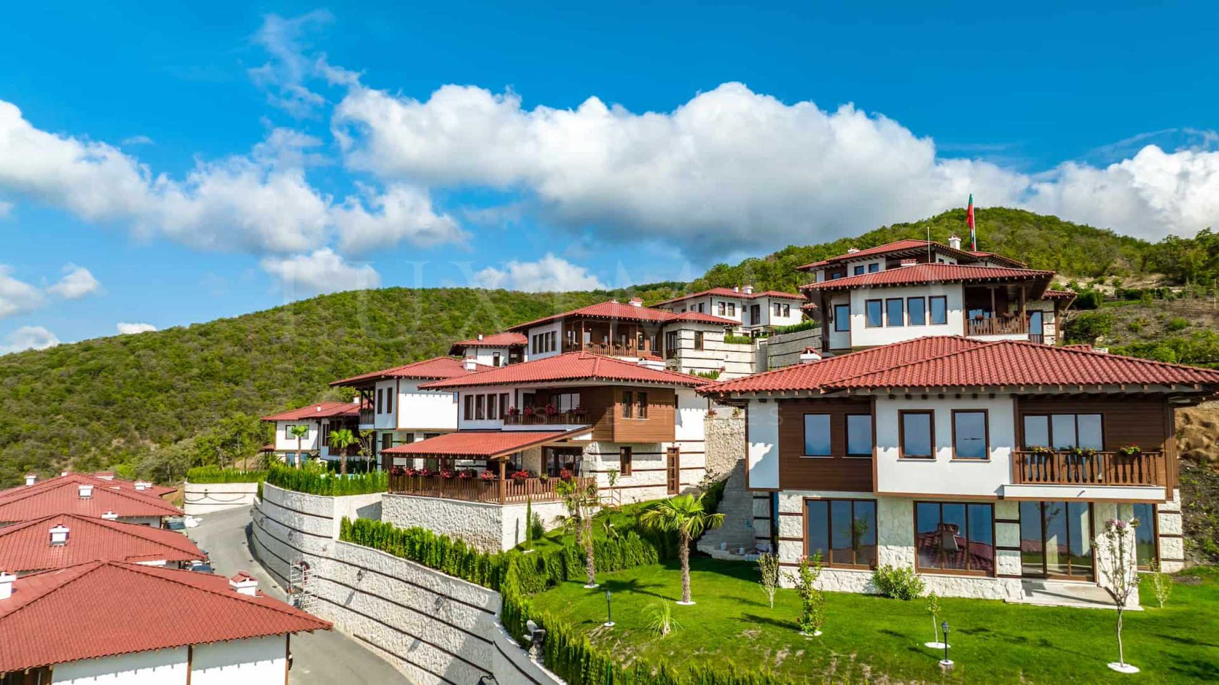 Разработената градоустройствена концепция допринася за романтичната визия на целия комплекс, като от всички нива на всяка къща има панорама към морето и гората.