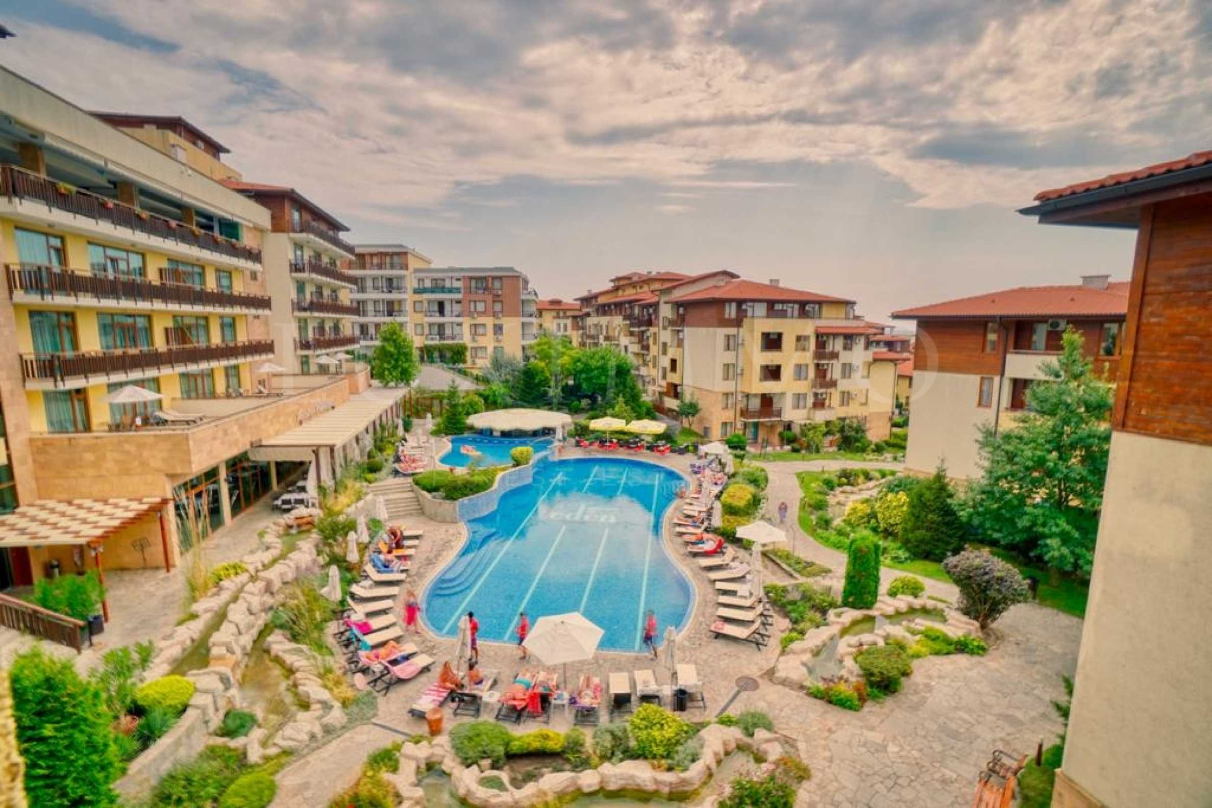 Уютно и съвременно обзаведен тристаен имот от 97 кв.м, в елитен комплекс с Акт 16, с отлични удобства, на първа линия в Свети Влас.